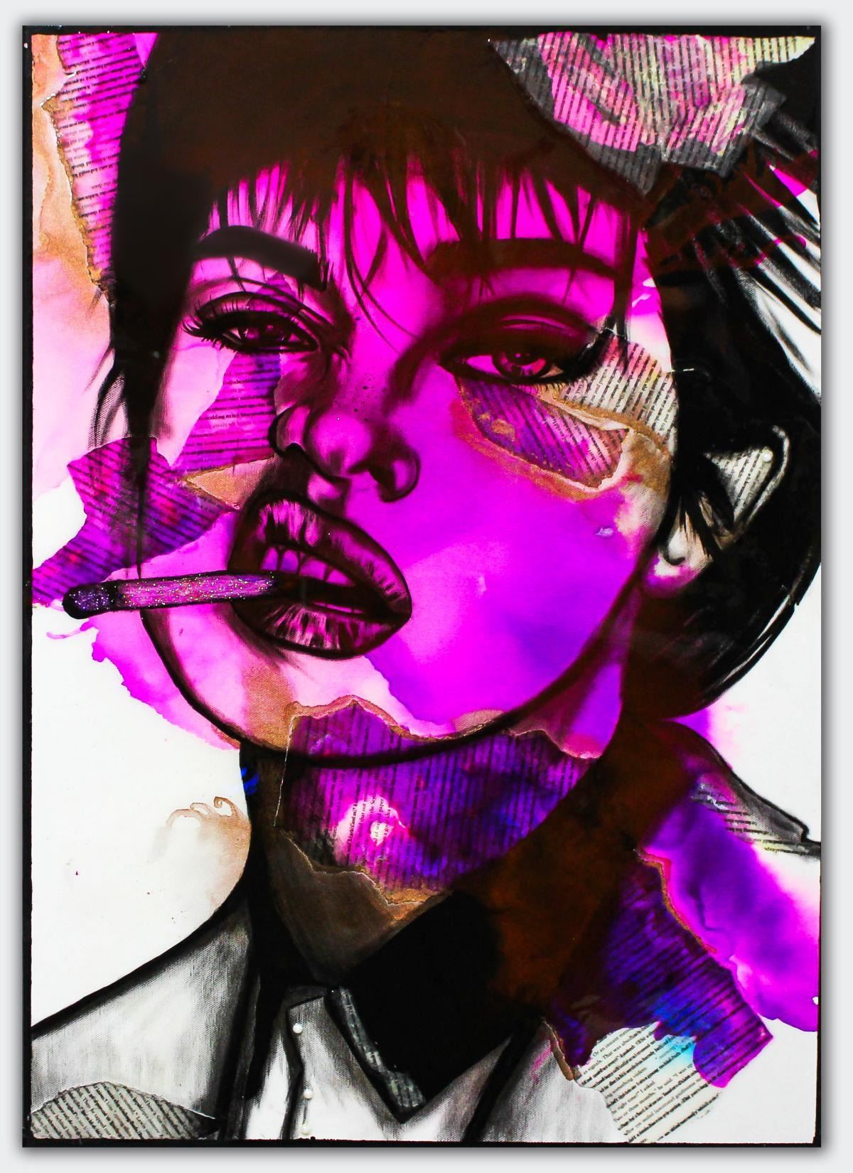 Artist: Hen Maman. Medium: Original Painting with Alcohol ink, acrylic, and epoxy rasin on Canvas. Title: Noa. Size (Unframed): 27.5" x 20". Certificate of Authenticity: Is included. Additional: Stretched and ready to hang. Reference# 15987.