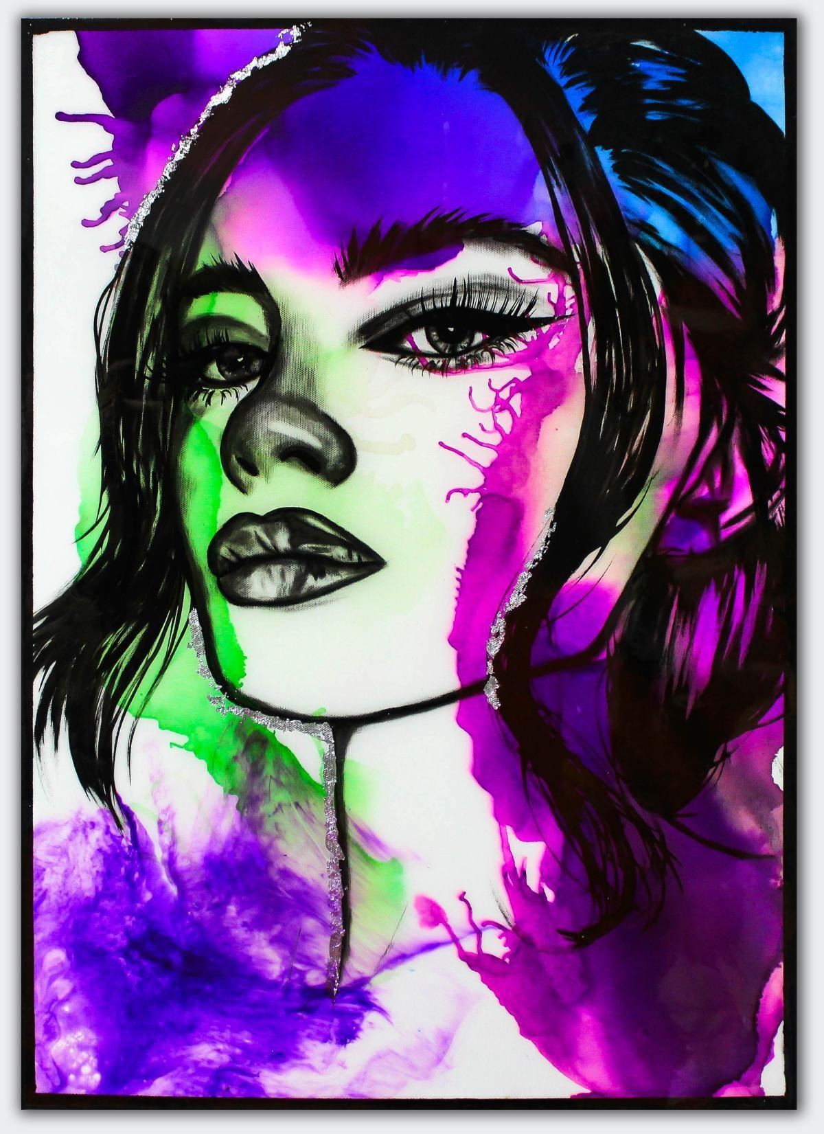 Artist: Hen Maman. Medium: Original Painting with Alcohol ink, acrylic, and epoxy rasin on Canvas. Title: Shahar. Size (Unframed): 27.5" x 20". Certificate of Authenticity: Is included. Additional: Stretched and ready to hang. Reference# 15994.