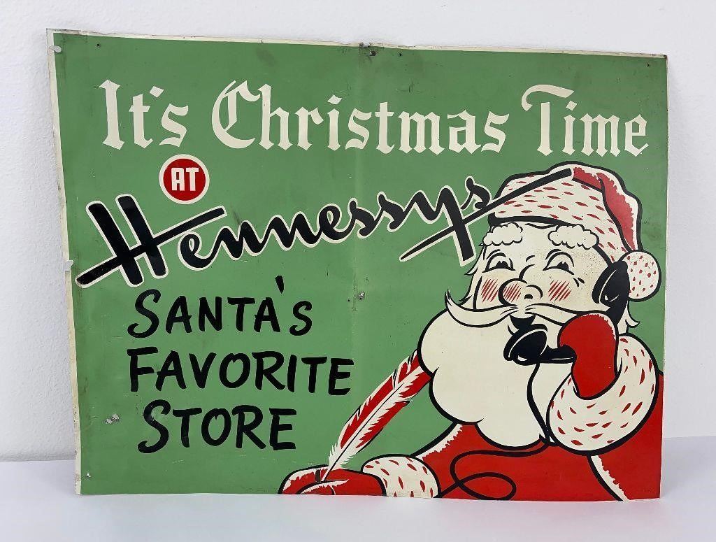 Very nice sign. Was used in the Hennessys Department store in Butte Montana. 20" by 27". Very nice graphics. Hand painted in Butte.