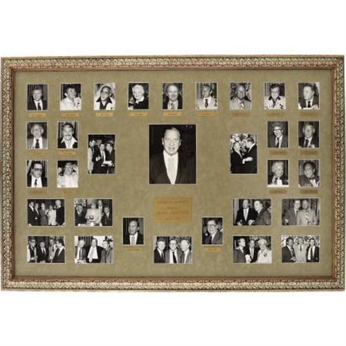 <B>Henny Youngman CENSORED Club Lifetime Achievement Award Photo Display.</B></I> A large display from the walls of the Beverly Hills CENSORED Club, featuring 30 b&w snapshots of various attendees at the 1981 roast honoring the master of the one-liner, matted and framed together to an overall size of 55" x 37.5". Photos include Abe Vigoda, Red Buttons, Robert Culp, Phil Silvers, Milton Berle, and Slappy White. In Excellent condition. <I>From the Beverly Hills CENSORED Club Celebrity Roast Archive.</B></I><BR><BR><b>Shipping:</b> Framed - with Glass, Large (<a target="_blank" href="http://www.heritageauctions.com/common/shipping.php">view shipping information</a>)