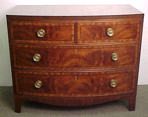 Henredon banded mahogany bowfront chest of drawers "Aston Court Collection"; with ebony line inlay and tulip wood banding; measures 32" high x 39" across x 20" deep late 20th C. (no visible defects) Estimate 300/600