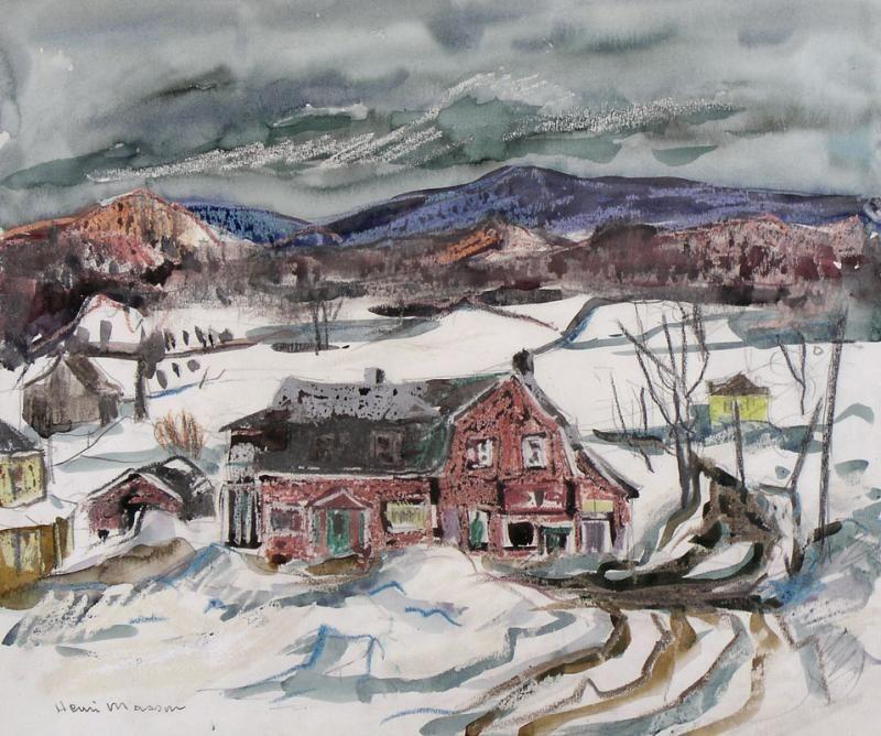 Henri Leopold Masson Canadian CGP, CSPWC, RCA [1907-1996]RED HOUSE, LAURENTIANSmixed media on paper1