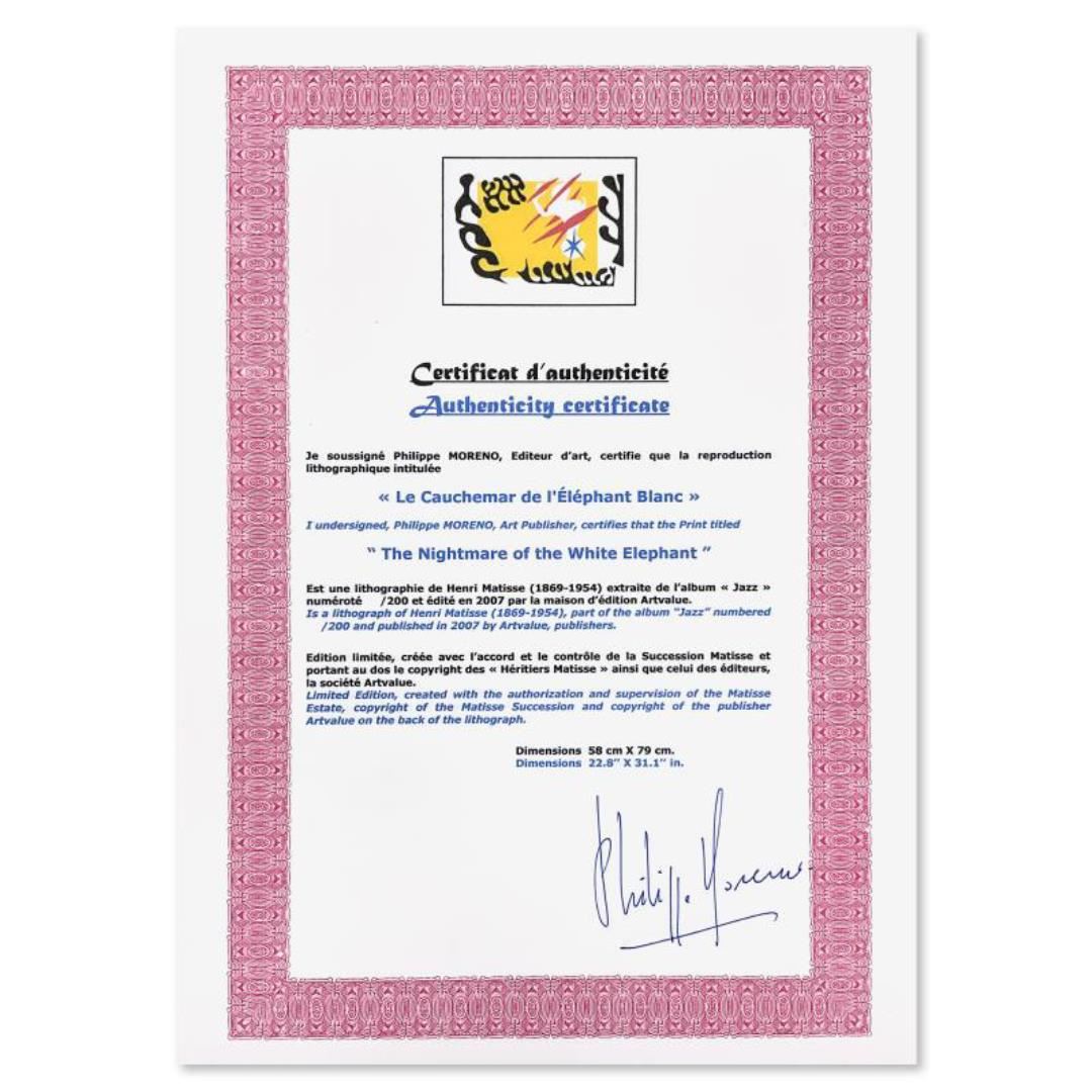 Henri Matisse (1869-1954) "Le Cauchemar de l'Elephant Blanc" Lithograph on Paper