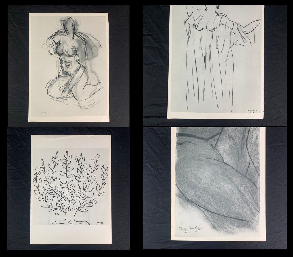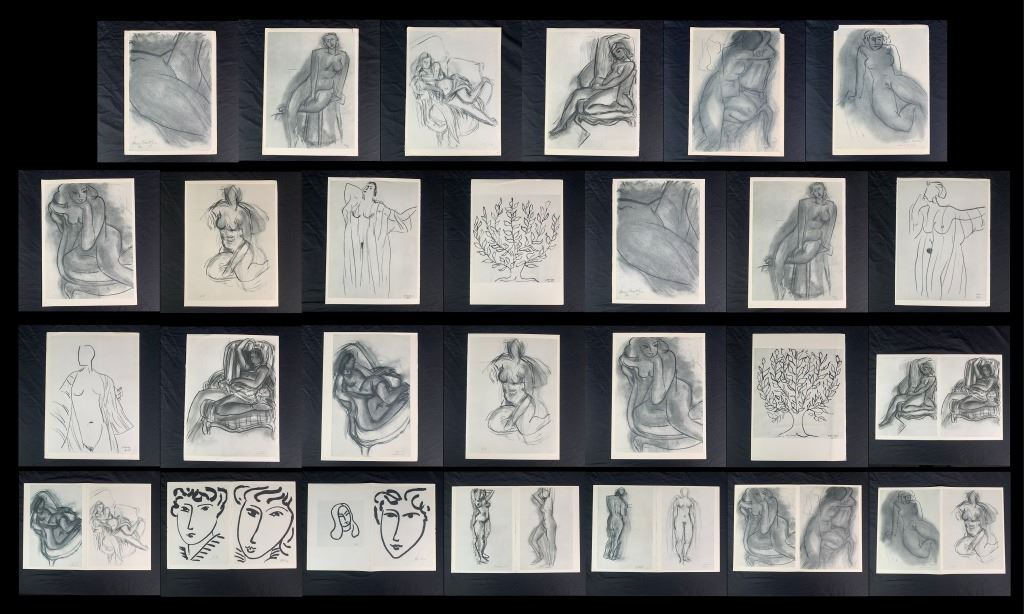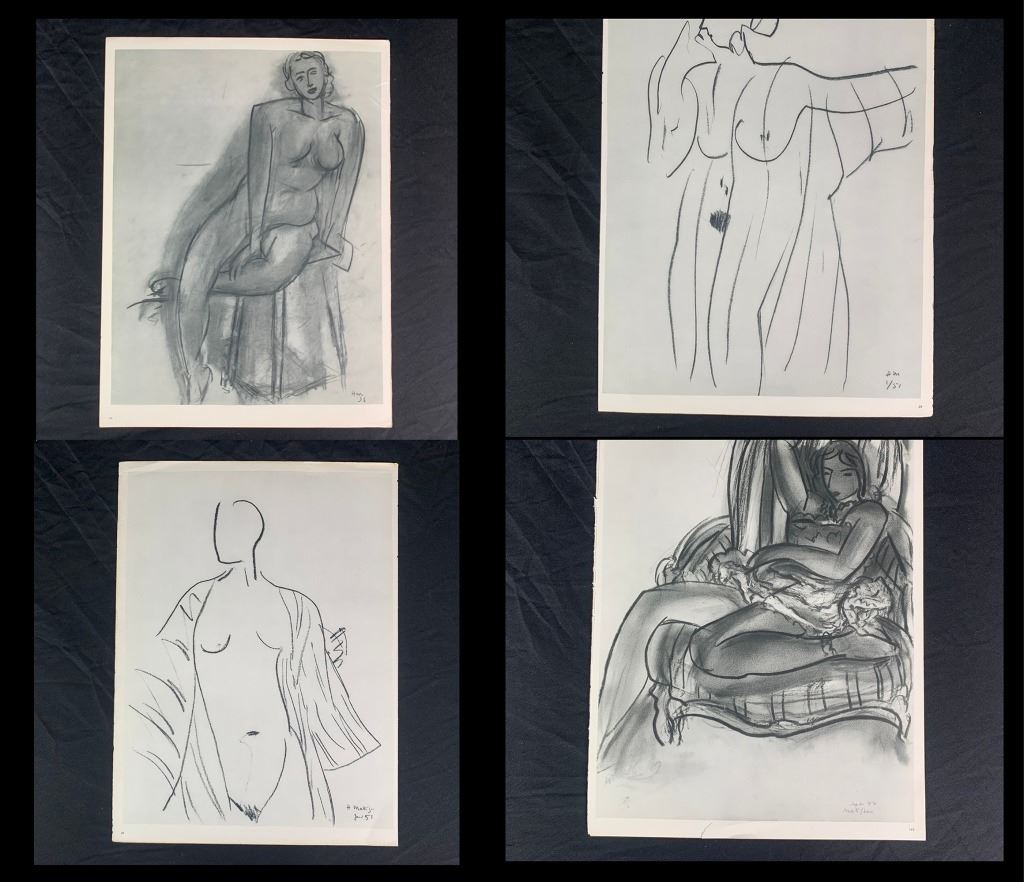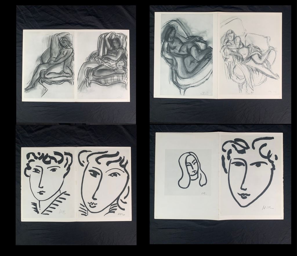 A grouping of Henri Matisse original prints. Generally in great condition, with only one print (page 55 and page 56 as it is double sided, "Dessin 25-11-65" and "Dessin 30-11-64") having a large, but minor vertical crease through it, and one print having a minor incision upper right corner, one print with a small tear at corner. Quite uncommon to see a collection being offered.