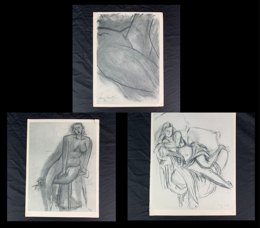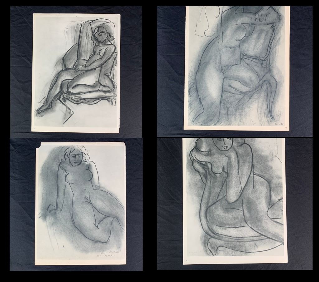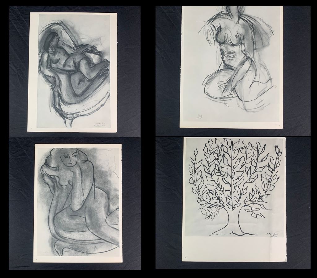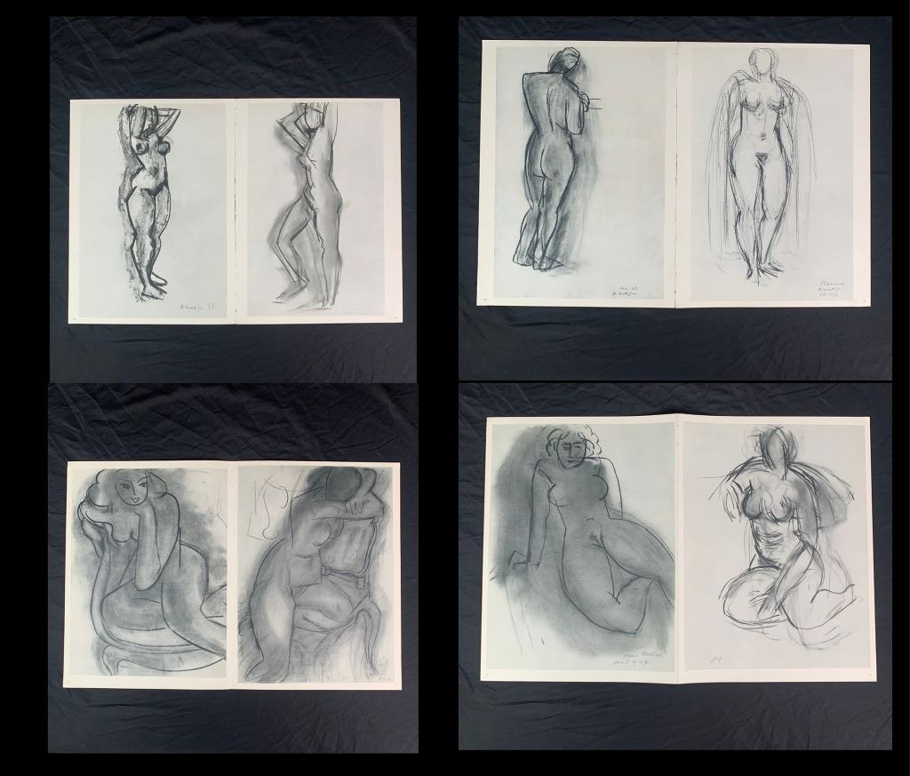 A grouping of Henri Matisse original prints. Generally in great condition, with only one print (page 55 and page 56 as it is double sided, "Dessin 25-11-65" and "Dessin 30-11-64") having a large, but minor vertical crease through it, and one print having a minor incision upper right corner, one print with a small tear at corner. Quite uncommon to see a collection being offered.