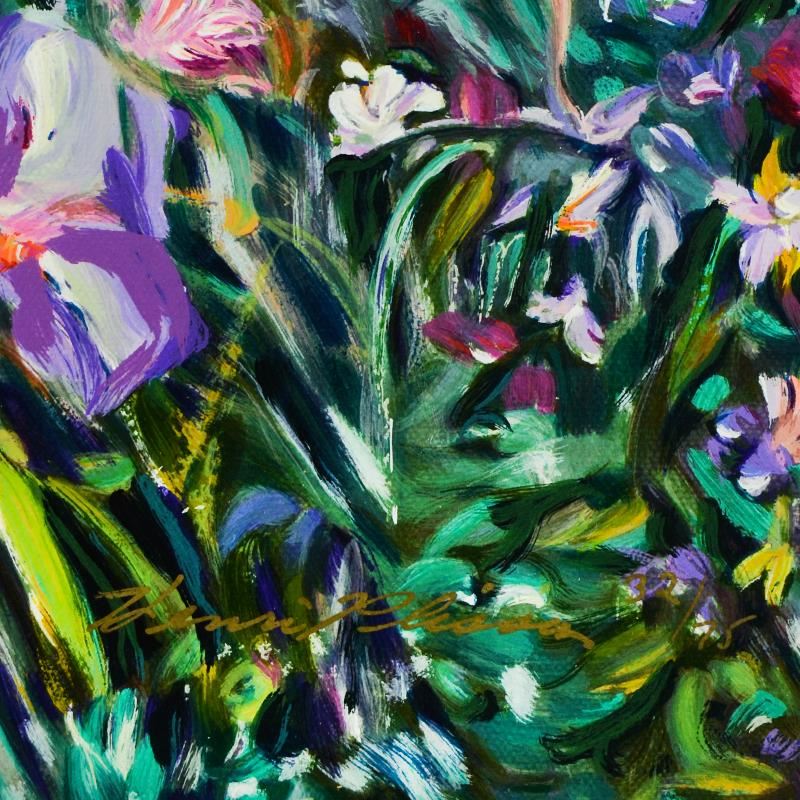 "Parisian Courtyard" is a limited edition giclee on stretched canvas by Henri Plisson, numbered 32/75 and hand signed by the artist. Includes Letter of Authenticity. Measures approx. 25" x 33" (image).