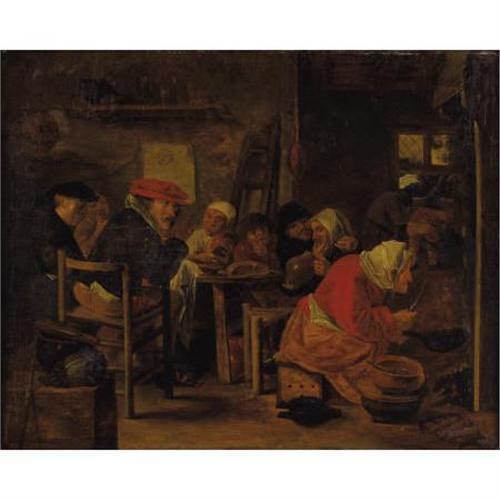 <B>HENRICUS ENGELBERTUS REIJNTJENS </B></I>(Dutch 1817-1900)<BR><I>The Feast</B></I><BR>Oil on beveled wood board<BR>12-1/4 x 15-7/8 inches (31.0 x 40.3 cm)<BR> <BR><BR><b>Shipping:</b> Requires 3rd Party Shipping (<a target="_blank" href="http://www.heritageauctions.com/common/shipping.php">view shipping information</a>)