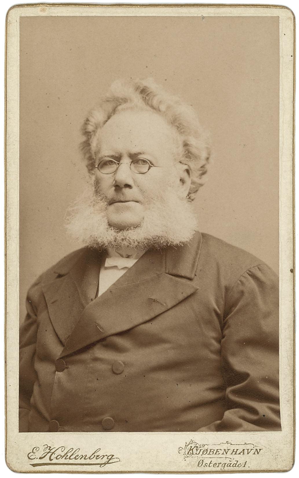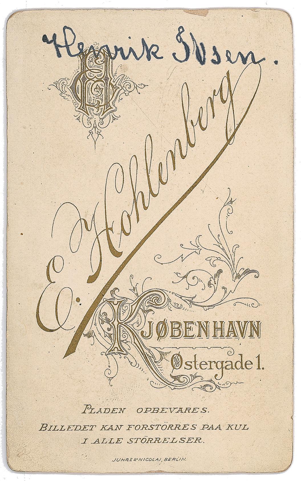 Revered Norwegian playwright and poet (1828–1906) whose works, including A Doll’s House and Hedda Gabler, made him one of the seminal figures in the forefront of modern drama. Original vintage 2.5 x 4 carte-de-visite photo of the spectacled and heavily whiskered playwright, by E. Hohlenberg of Ostergarde, signed on the reverse in black ink. In fine condition, with a few edge dings, a touch of trivial soiling to reverse, and some light scuffing to image.