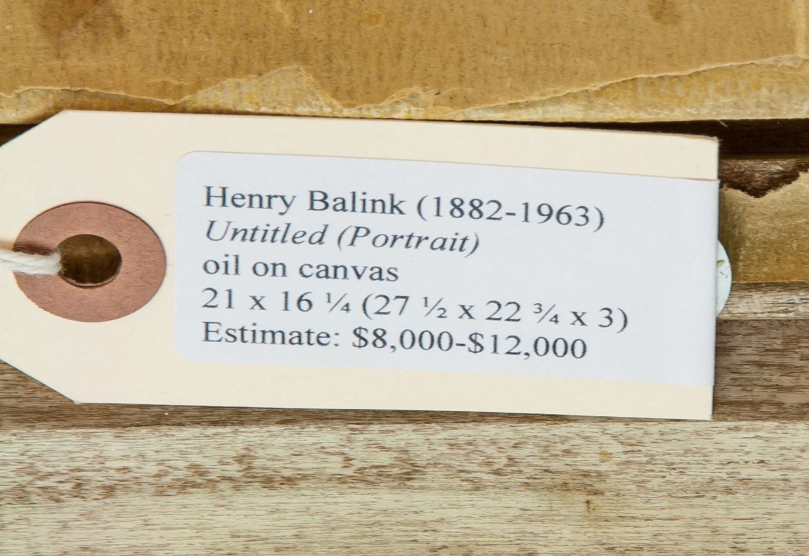 Oil on canvas portrait framed. Signed and attr. Henry Balink (American, 1882-1963) on lower right corner. 20 x 16 inch (52 x 41 cm). Henry Balink was born in Amsterdam, Holland. His parents were outwardly opposed to his becoming an artist, and as a result Balink funded his own education at the Art Institute of Rotterdam through bicycle racing and ice-skating. In 1909, Balink entered the Royal Academy in Amsterdam on the Queen Wilhelmina Merit Scholarship. He graduated in 1914 and immediately began working as a professional artist in Holland. PROVENANCE: Upper New York Estate
