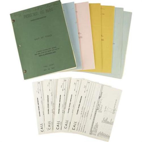 <B>Henry Calvin's</B></I> <B><I>Ship of Fools</B></I></B></I> <B>Screenplay and Other Items.</B></I> Includes actor Henry Calvin's personal copy of the final draft screenplay for <I>Ship of Fools</B></I> (1965), five call sheets, and six sets of script revisions, from Calvin's personal collection. In Overall Very Fine condition. <I>From the Henry Calvin Collection.</B></I><BR><BR><b>Shipping:</b> Books & Catalogs (<a target="_blank" href="http://www.heritageauctions.com/common/shipping.php">view shipping information</a>)