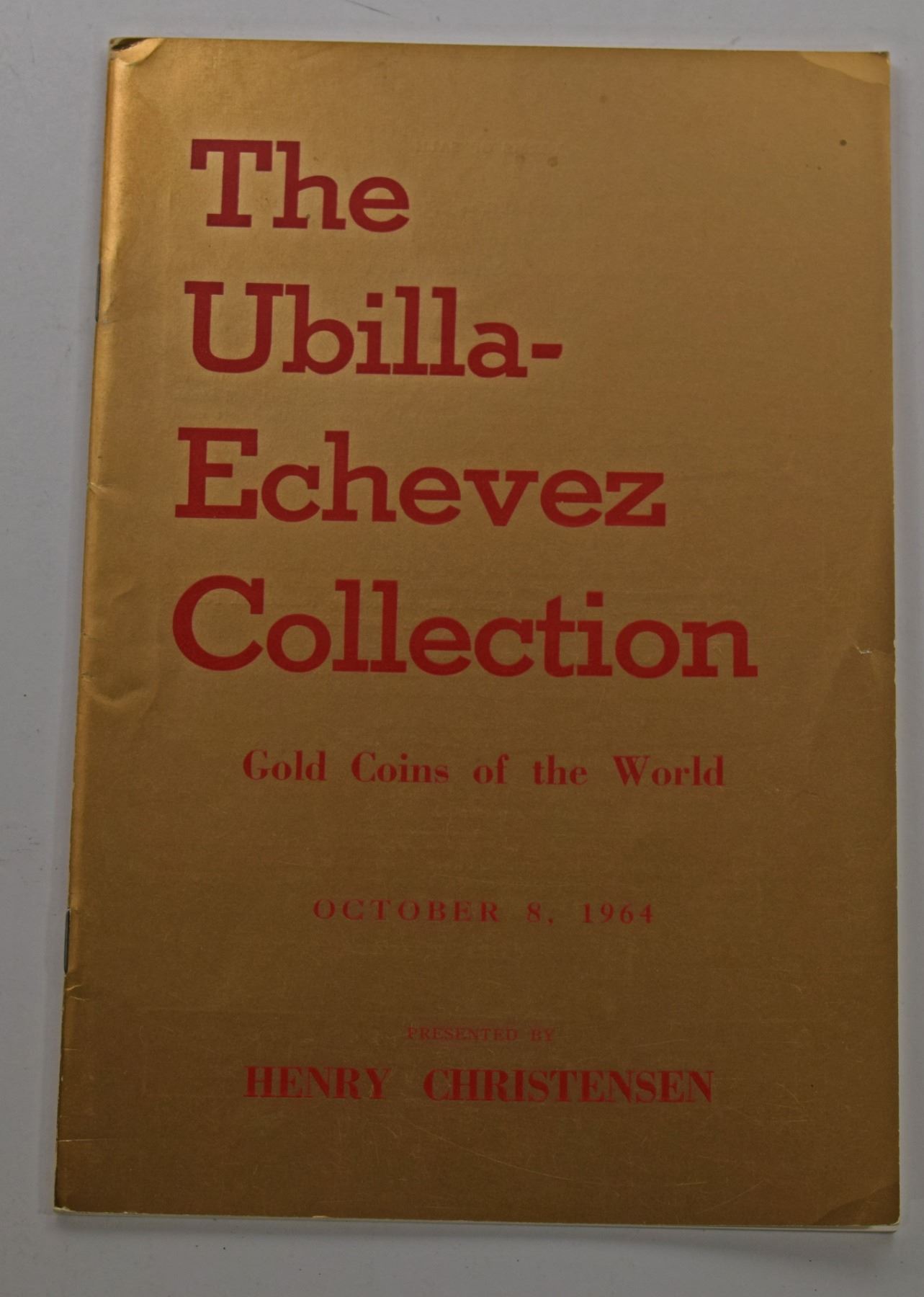 Henry Christensen. THE UBILLA-ECHEVEZ COLLECTION - GOLD COINS OF THE WORLD. November 8, 1964. 12mo, 40 pages; Softcover; This auction catalog was the first to offer a large quantity of coins from the 1715 Fleet, although this was not advertised at the time of the auction. It seems that the National Geographic Society had the exclusive rights to announce the discovery of this fabulous treasure (and had not yet made the announcement). But anyone who knows the history of the 1715 Fleet will recognize the names on the title of the catalog, “Ubilla-Echevez”, as the commanders of the New Spain Flota and the Tierra Firma Galleons. The catalog contains 106 lots of gold cobs from the 1715 Fleet, including five gold royals. Subject: History - Sunken Treasure