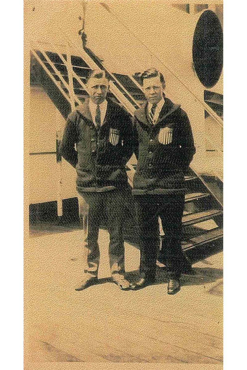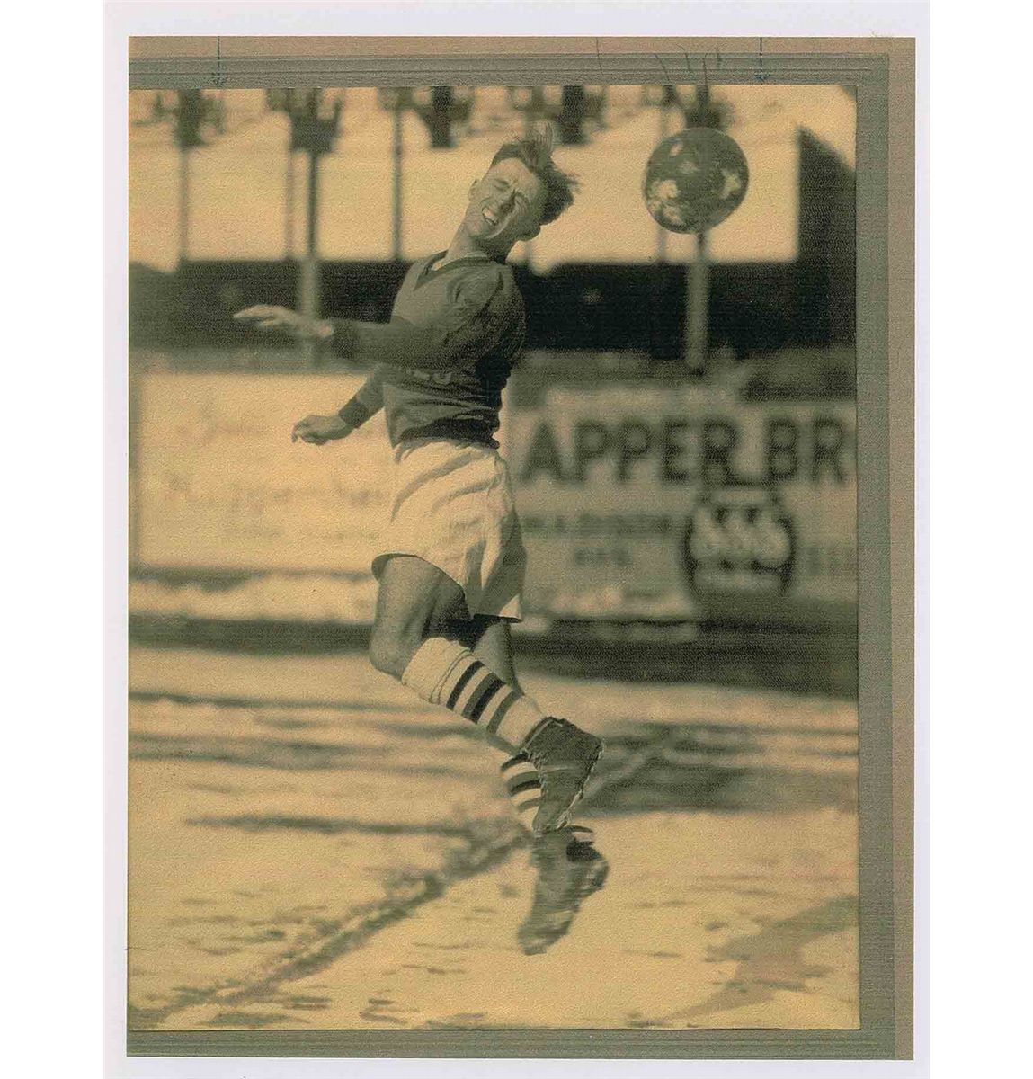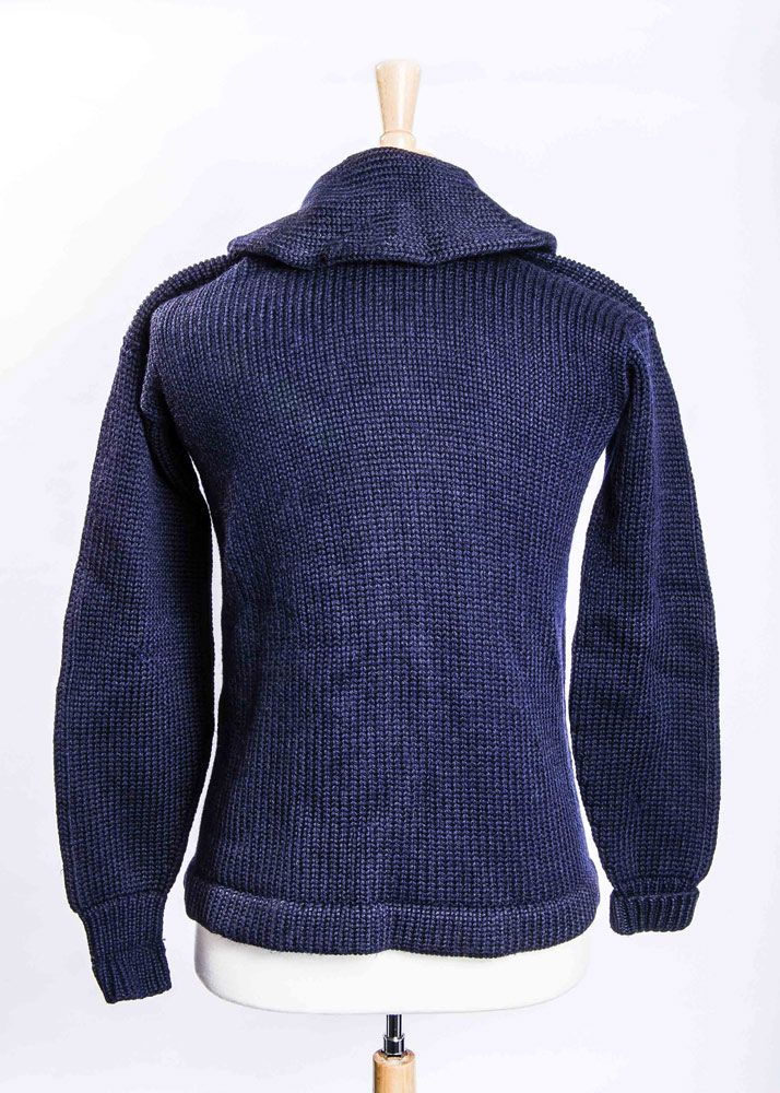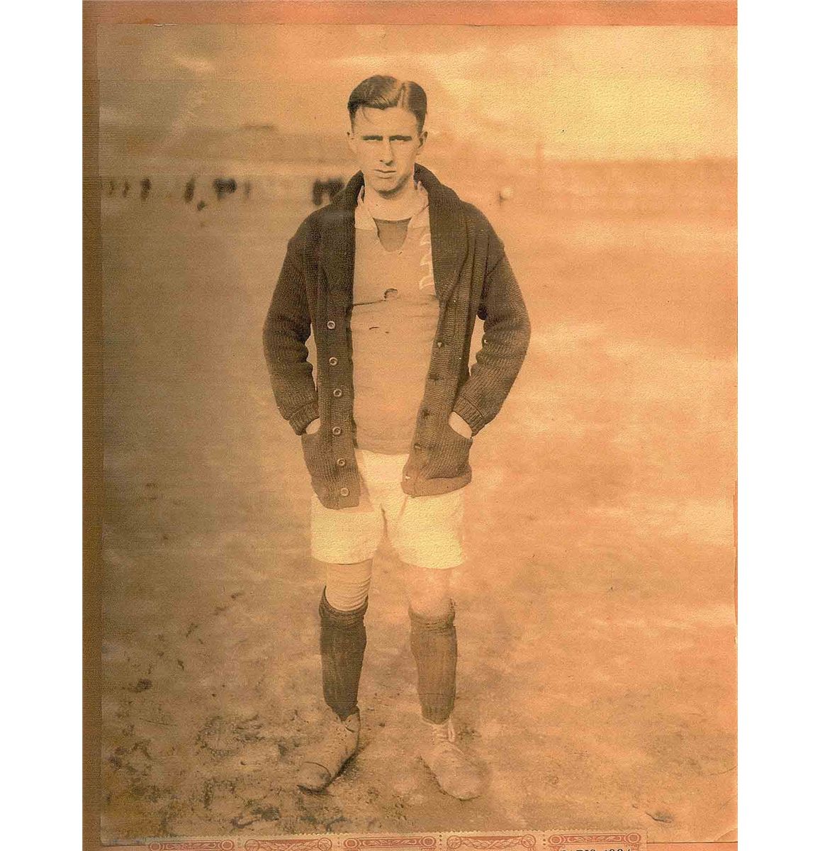 A navy blue wool shawl-collared knit sweater bearing the official 1924 Olympic shield on the left breast, presented to American Olympic soccer player Henry Farrell while on the SS America en route to the 1924 Olympic Games in Paris. The heavy sweater is of the highest quality construction and features eight buttons up the front and two pockets. Mr. Amyx obtained this directly from Farrell’s granddaughter, and it is accompanied by a detailed packet of provenance including images of Henry Farrell wearing the sweater. In 1924, Farrell played forward for the US National Olympic Team, which scored a 1–0 victory in the preliminary round against Estonia. Their next match resulted in a 3–0 defeat by Uruguay, who went on to become the surprise gold medalists in the event. Early sports–related sweaters such as this are extremely scarce, highly desirable, and rarely seen in such fine condition.
