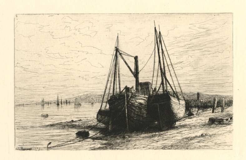 Henry Farrer Original Etching "On New York Bay" - Printed On Cream Laid Paper And Published In 1888 By Estes & Lauriat. Plate Size: 4 5/8 X 7 1/8 Inches. Signed In The Plate - Professionally Framed & Matted - Comes With Certificate - -