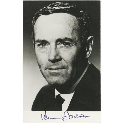 <B>Henry Fonda Signed Photo.</B></I> A b&w 3.5" x 5.5" photo postcard signed by the actor in blue ink, in Excellent condition.<BR><BR><b>Shipping:</b> Flat Material, Small (<a target="_blank" href="http://www.heritageauctions.com/common/shipping.php">view shipping information</a>) <BR><BR><B>Important not