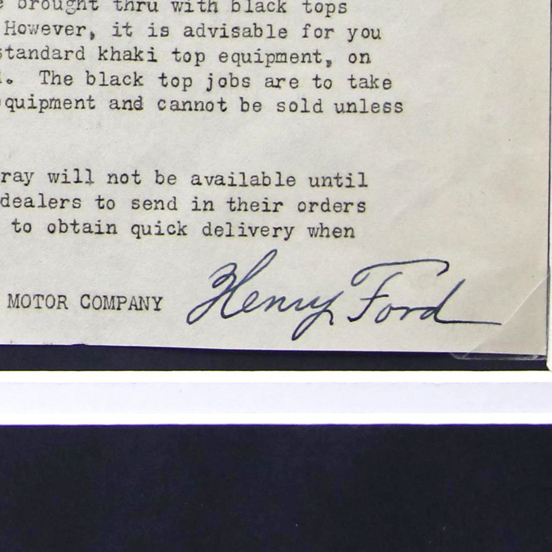 Henry Ford Signed typewritten letter on Ford Motor letterhead Stationary dated June 19, 1963 10 x 8.375. Professionally custom Matted and Framed. Comes with a Letter of Authentication from Guaranteed Forensic Authenticators (GFA), along with the GFA guarantee of authenticity.