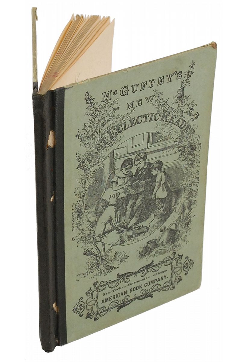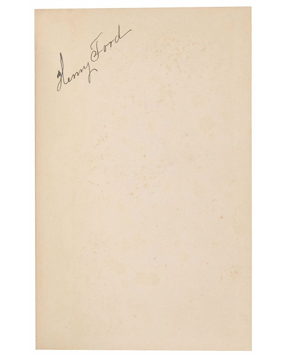 Signed book: McGuffey’s New First Eclectic Reader. Reprinted by Ford from the 1885 edition in 1925. Hardcover, 4.5 x 6.5, 84 pages. Signed in fountain pen on a replacement front free end page. Autographic condition: scattered foxing to signed page, otherwise fine. Book condition: VG-/None. Ford cited McGuffey's Readers as one of his most important childhood influences, and republished them at his own expense to distribute to schools across the United States.