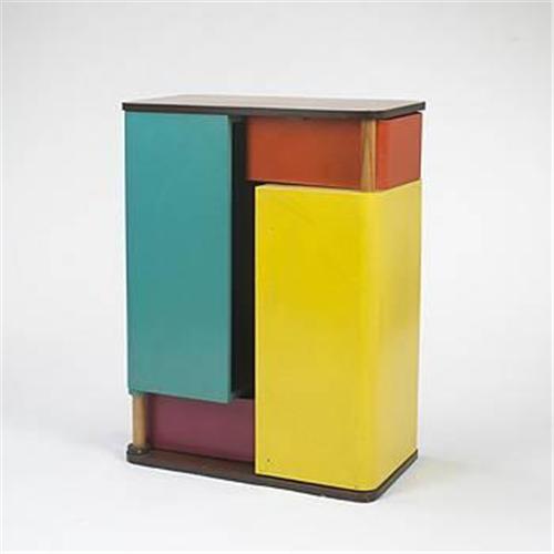 Henry Glass<BR>Swingline cabinet<BR>Fleetwood Furniture Company<BR>USA, 1952<BR>lacquered masonite, birch<BR>32"w x 17.5"d x 42.5"h<BR><BR><BR><BR><BR><BR>