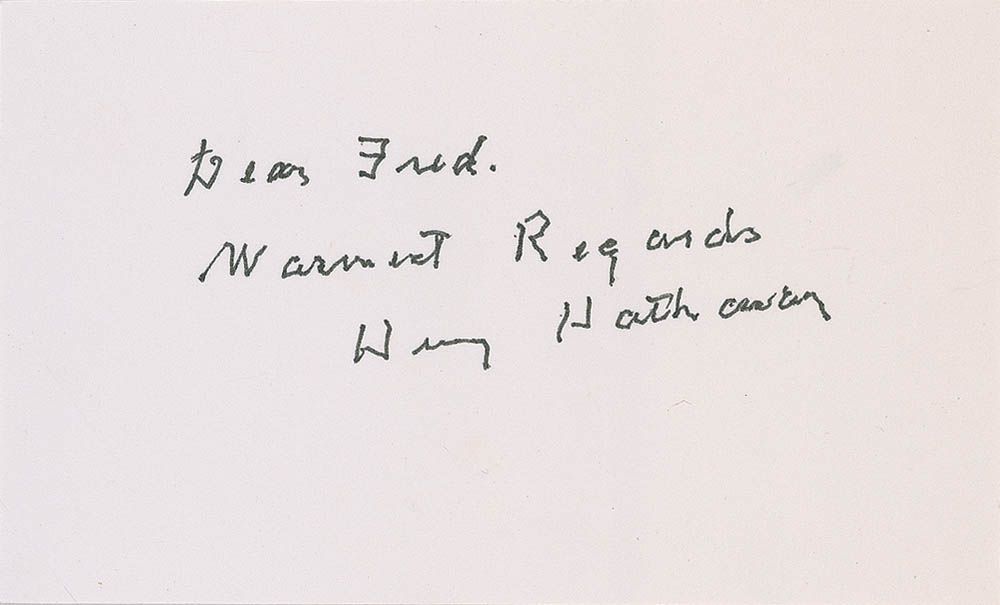 Felt tip signature and inscription, “Dear Fred, Warmest regards, Henry Hathaway,” on an off-white 5 x 3 card. In fine condition, with the signature a bit shaky from old age.