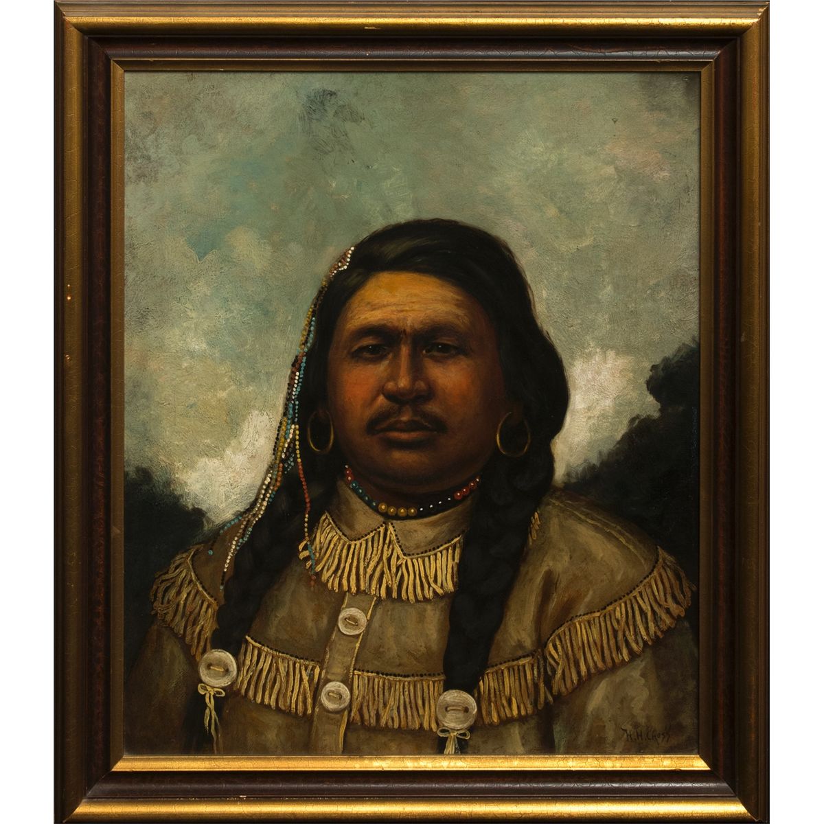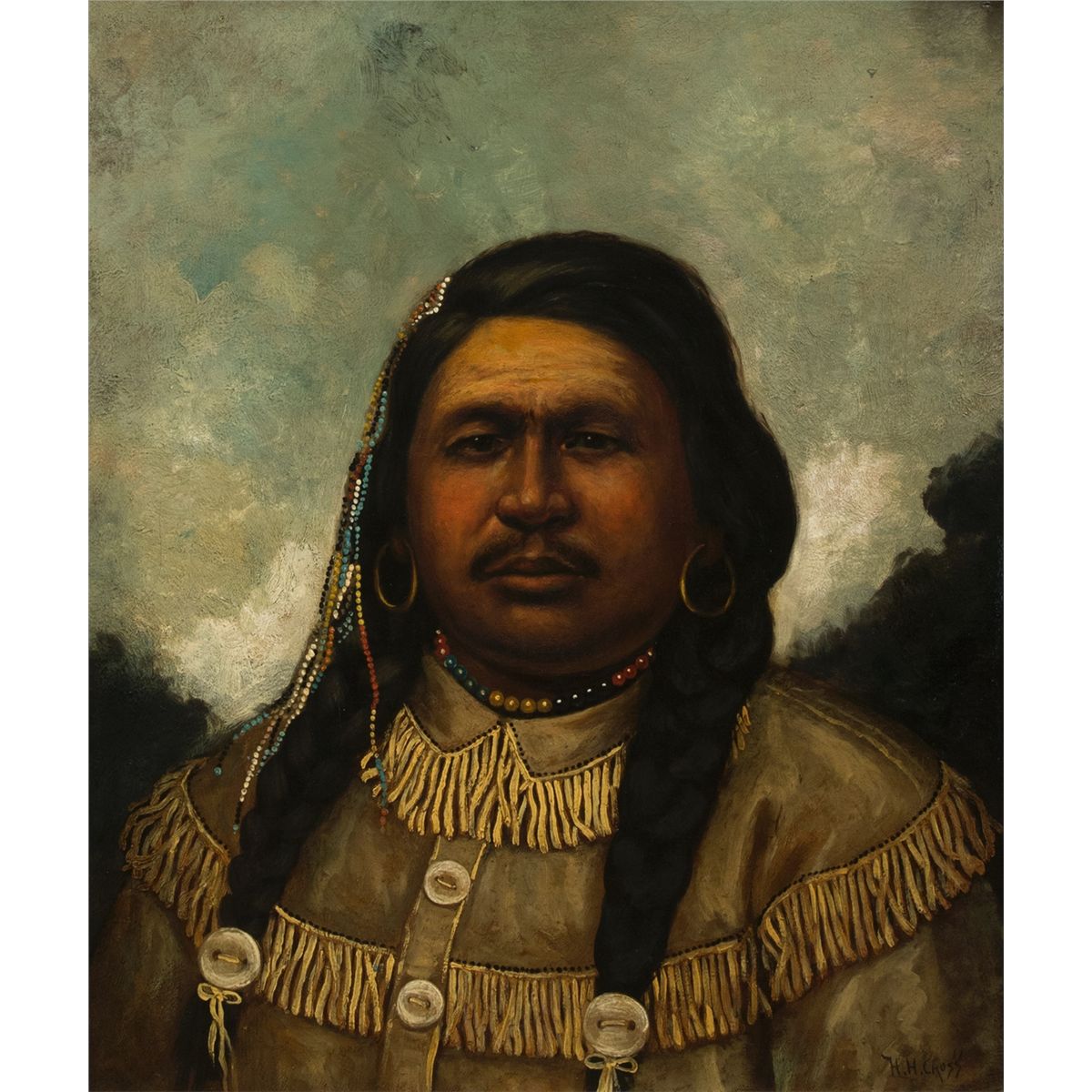 Henry Herman Cross (1837 - 1918). Ouray, Chief of the Utes. 24" x 20" oil on canvas. Signed lower right: H. H. CROSS. Verso: titled.
