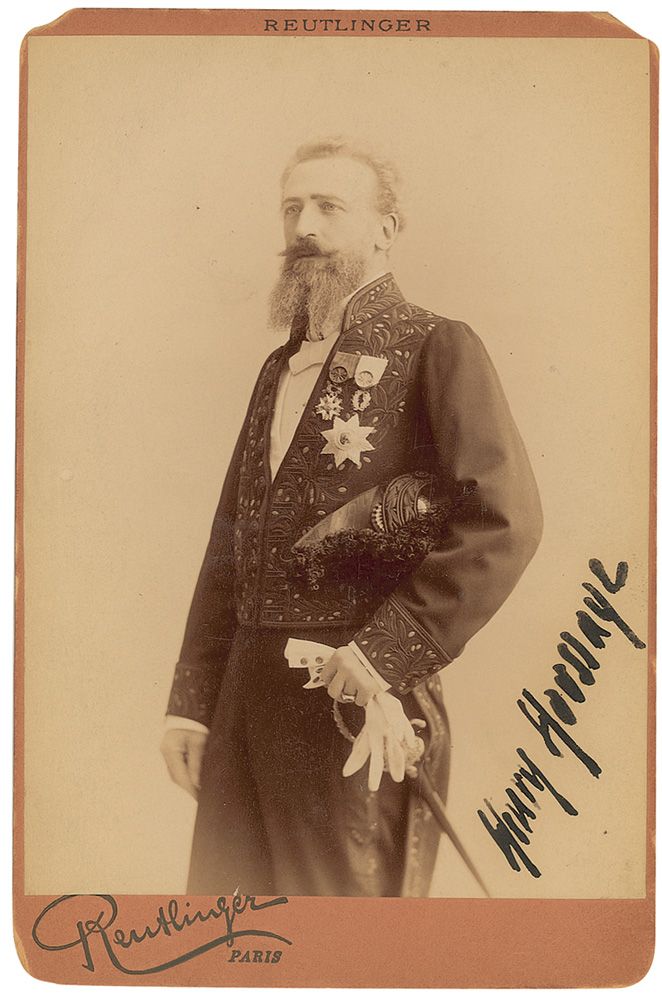 French historian (1848–1911) who wrote on topics ranging from ancient Greece to the military history of Napoleon. Original 4.25 x 6.5 cabinet photo by Reutlinger of Paris, boldly signed in the lower right of the image in black ink. In fine condition, with slight paper loss to two corners.