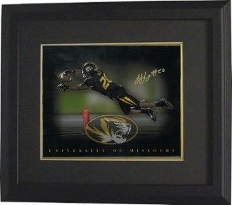Henry Josey played college football at Missouri. Josey returned in 2013 to play in all 14 games, rushing for 1,166 yards on 174 carries with 16 touchdowns. After the season he announced that he would forgo his senior season and enter the 2014 NFL Draft. Henry Josey has hand signed this Missouri Tigers 8x10 Photo. Private Signing March 8th, 2014 in Chesterfield, MO. Photo of the Signing and Certificate of Authenticity from Athlon Sports. Custom Black Mat and Premium Black Frame as shown.