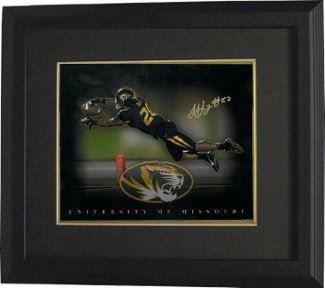 Henry Josey played college football at Missouri. Josey returned in 2013 to play in all 14 games, rushing for 1,166 yards on 174 carries with 16 touchdowns. After the season he announced that he would forgo his senior season and enter the 2014 NFL Draft. Henry Josey has hand signed this Missouri Tigers 8x10 Photo. Private Signing March 8th, 2014 in Chesterfield, MO. Photo of the Signing and Certificate of Authenticity from Athlon Sports. Custom Black Mat and Premium Black Frame as shown.