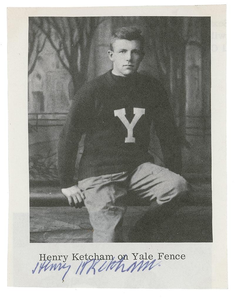 College Football Hall of Famer (1891–1986) who played center and guard for Yale. Clipped 3.25 x 4.25 book photo, signed in the lower border in blue ballpoint. In fine condition, with a horizontal fold under facial area.