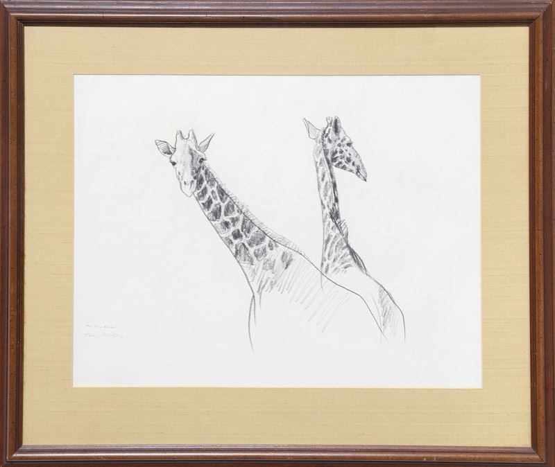 Henry Koehler, Two Giraffes, Pencil Drawing