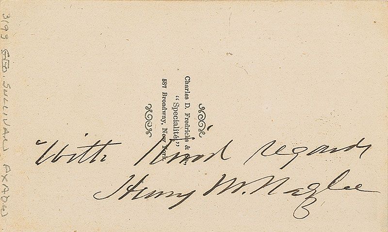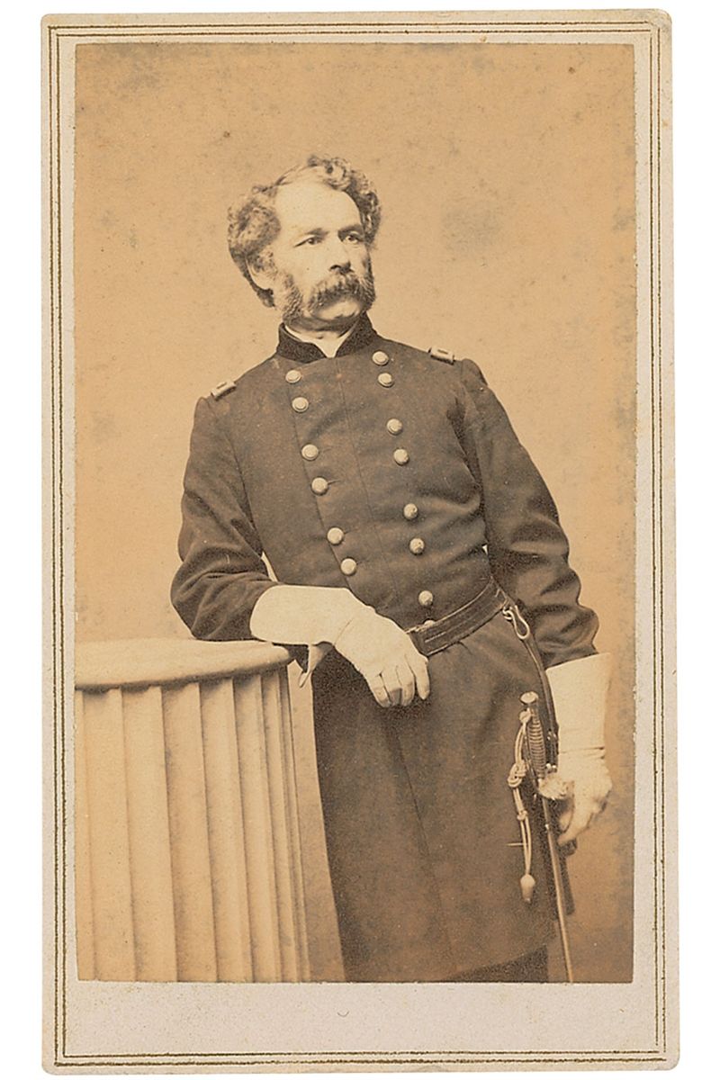 Union general (1815–1886) who commanded a brigade during the Peninsula Campaign. Original 2.25 x 4 carte-de-visite photo by Charles D. Fredricks of New York, signed on the reverse in black ink, “With kind regards, Henry M. Naglee.” In fine condition, with a pencil notation to reverse.