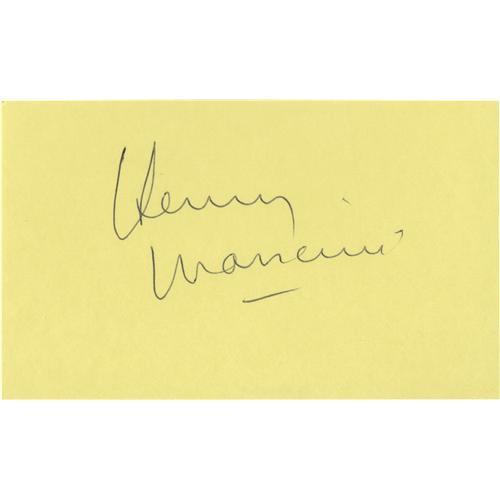 <B>Henry Mancini Autograph.</B></I> A yellow 3" x 5" notecard signed by famous screen composer in black ink, in Excellent condition.<BR><BR><b>Shipping:</b> Flat Material, Small (<a target="_blank" href="http://www.heritageauctions.com/common/shipping.php">view shipping information</a>) <BR><BR><B>Important no