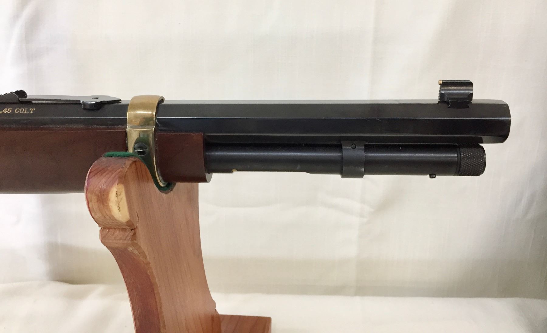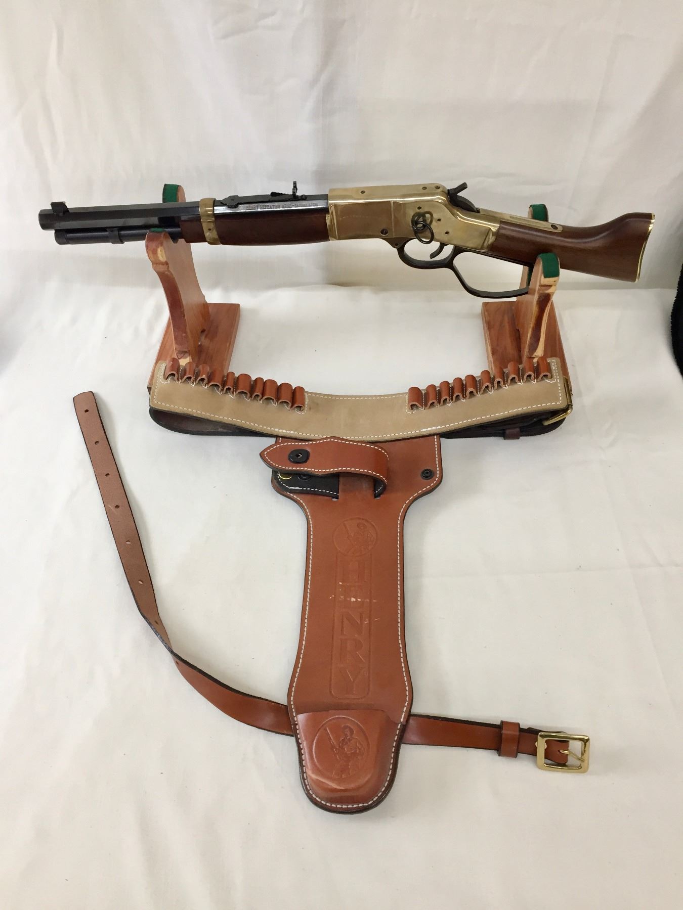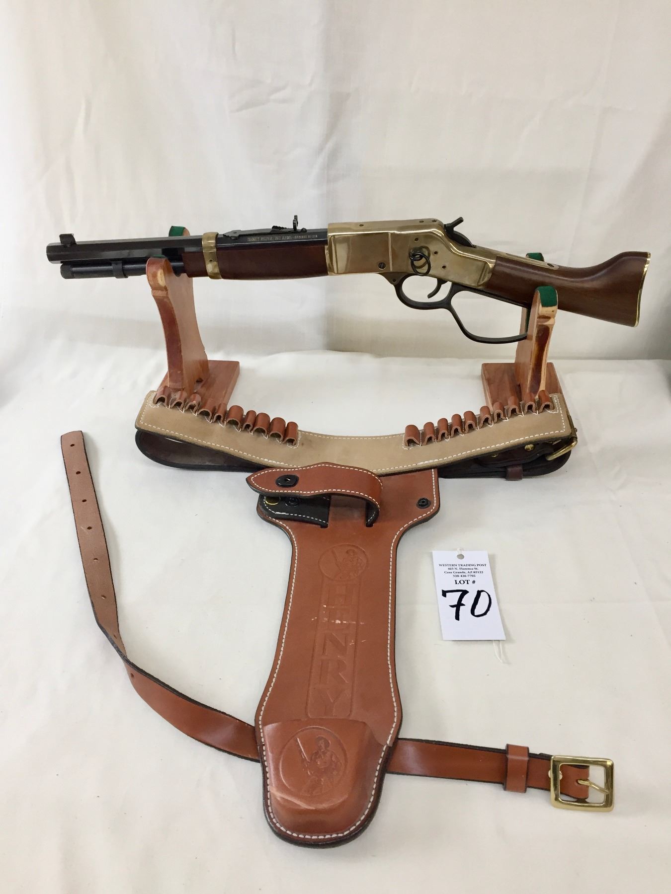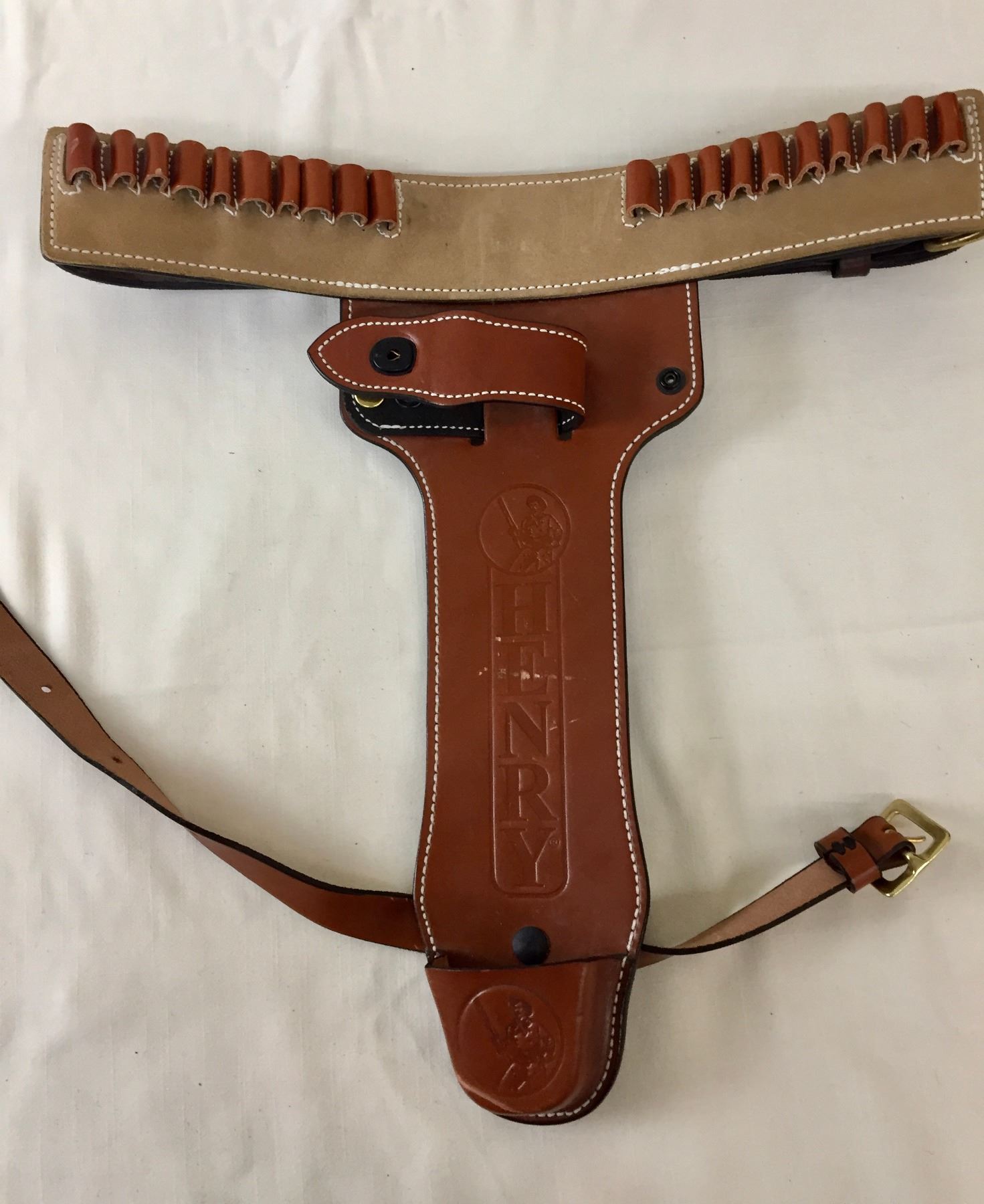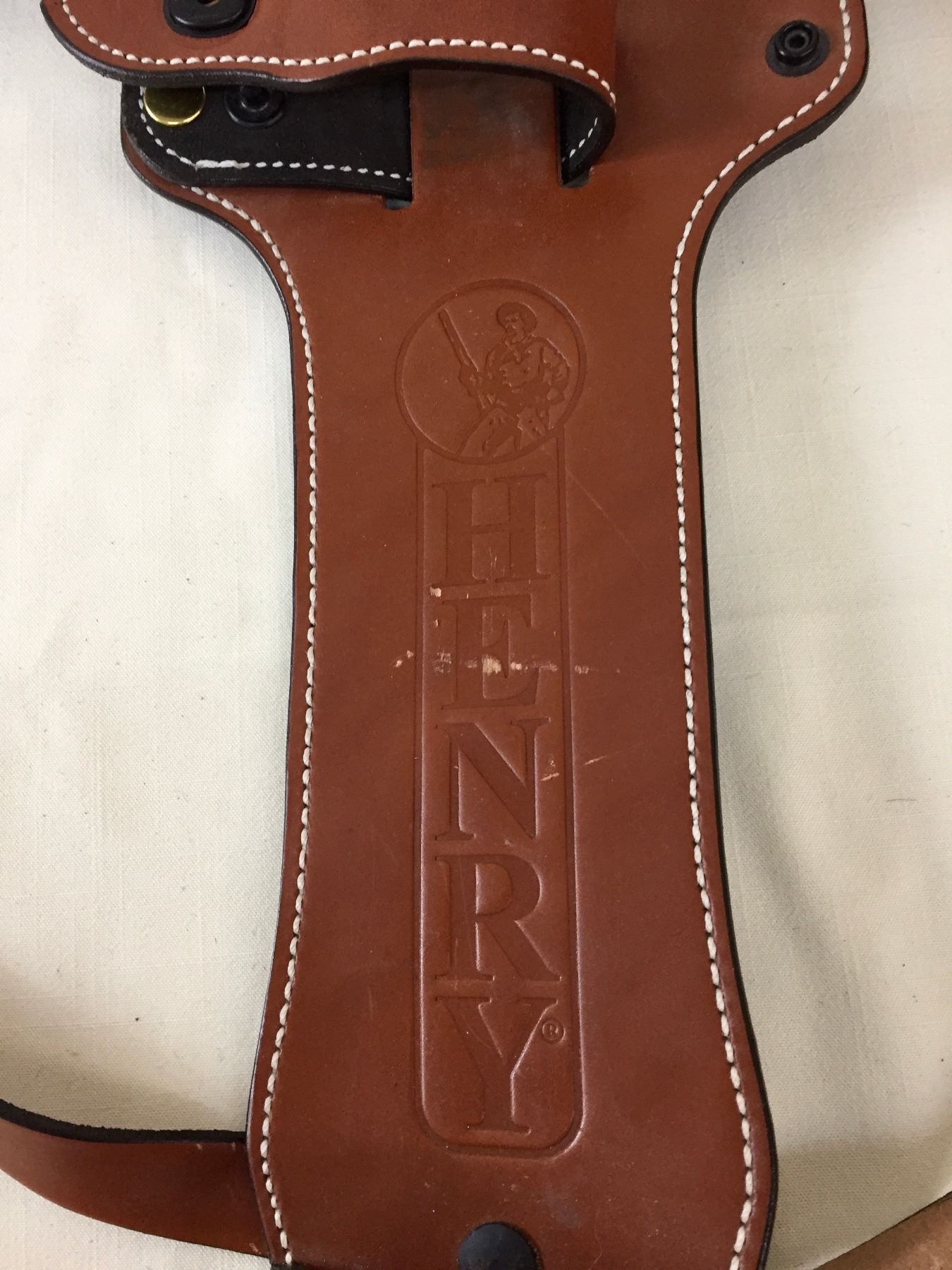 Description: Presented for your pleasure is this Henry Repeating Arms Mare's Leg .45 caliber lever action with leather rig in like new condition.