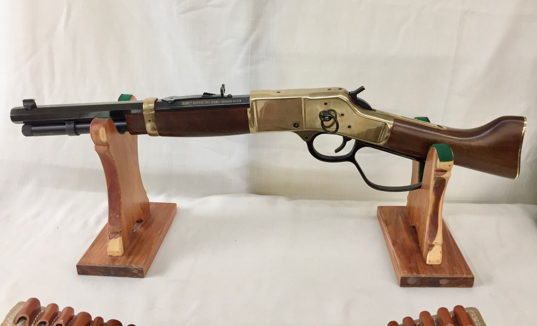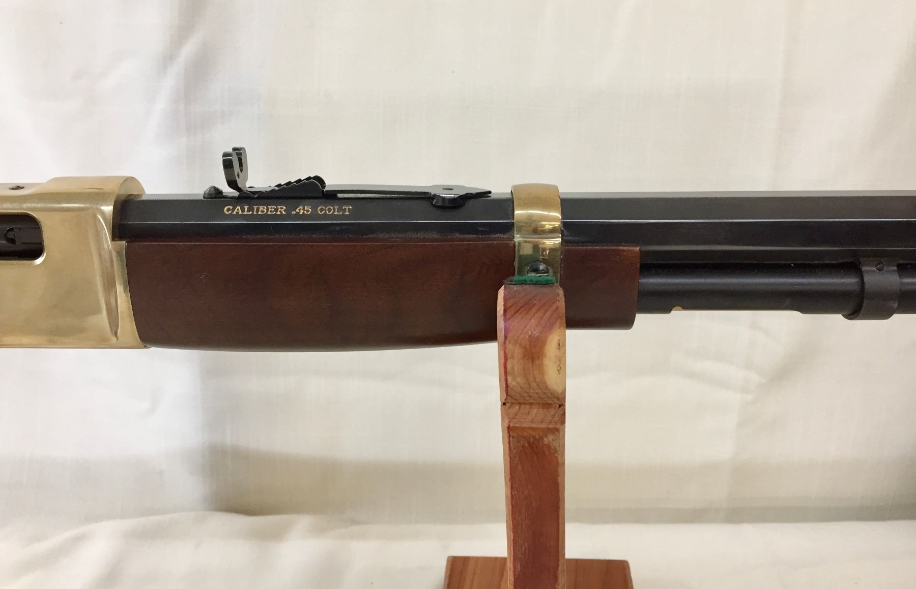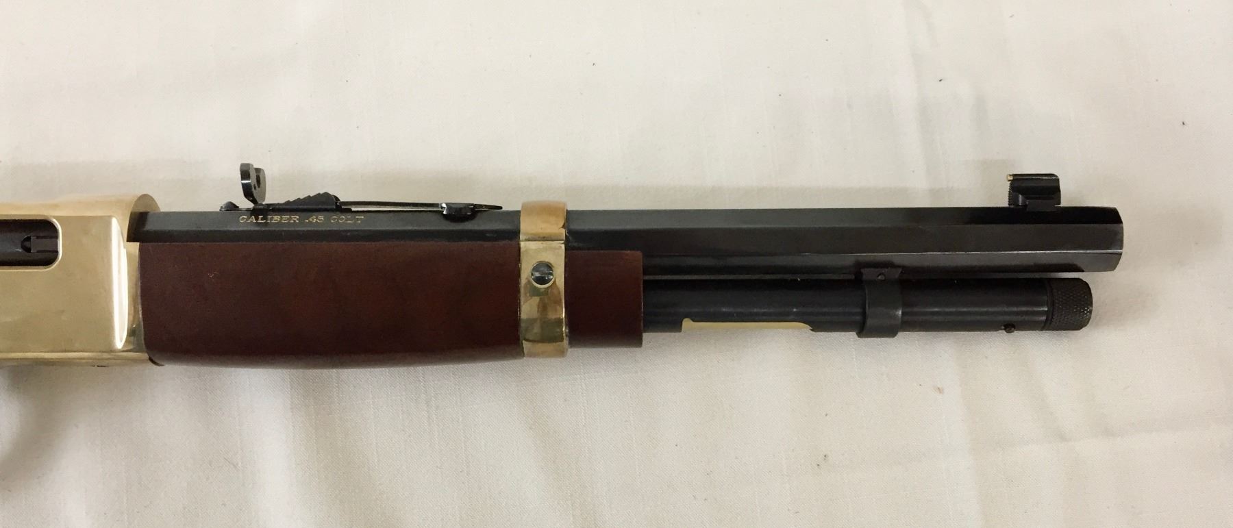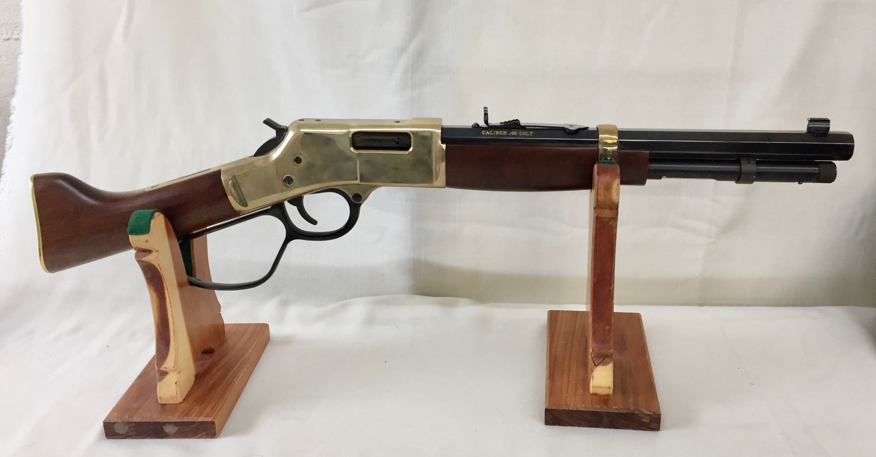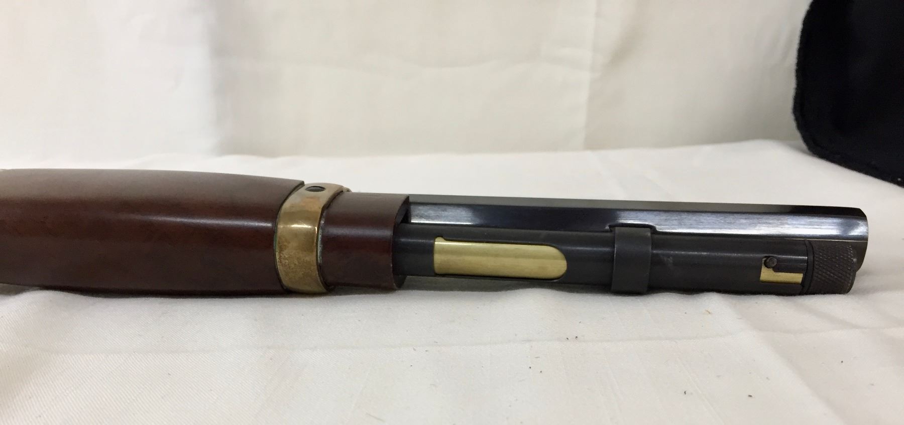 Description: Presented for your pleasure is this Henry Repeating Arms Mare's Leg .45 caliber lever action with leather rig in like new condition.