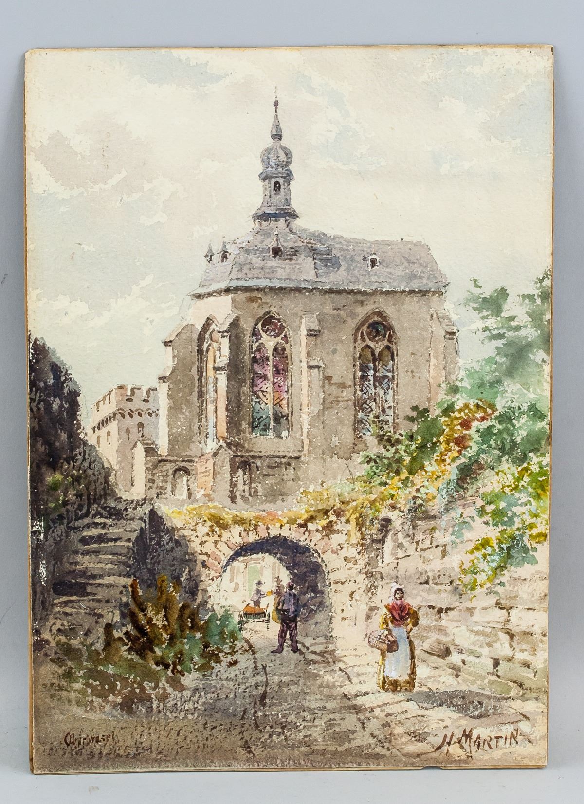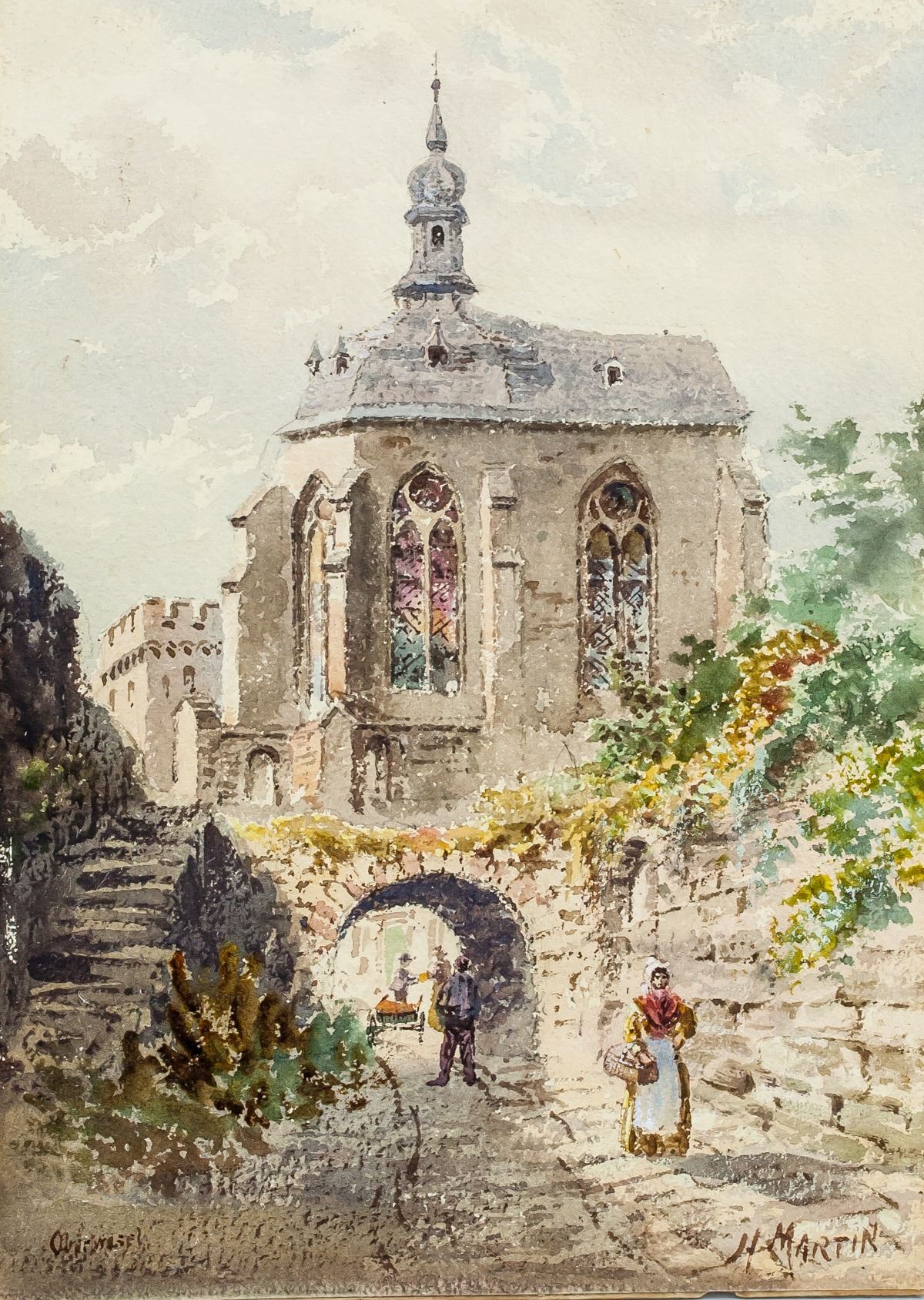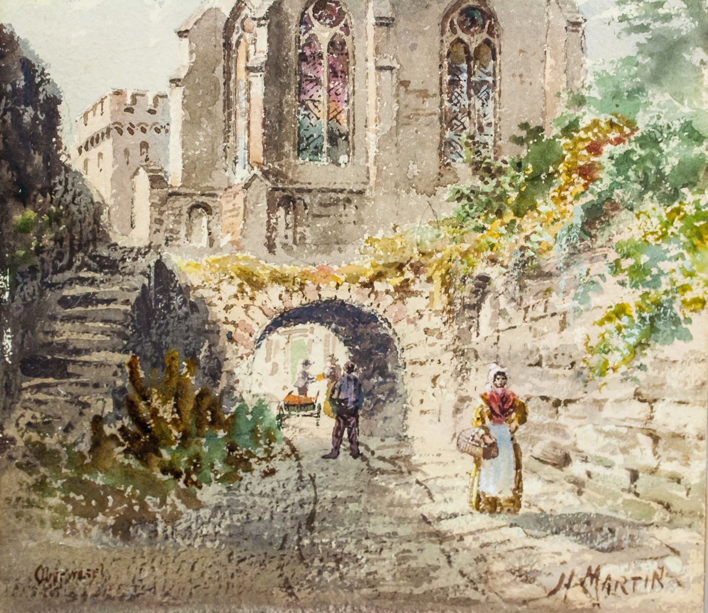 Watercolor on board. Featuring a grand church in the background with pedestrians walking by. Signed H. Martin on the bottom right corner. "Montreal" inscribed in bottom left corner. Henry Martin (1837-1902, Canadian). 36 x 26 cm (14.2 x 10.2 in). PROVENANCE: This lot carries limited provenance from a Private Canadian collection