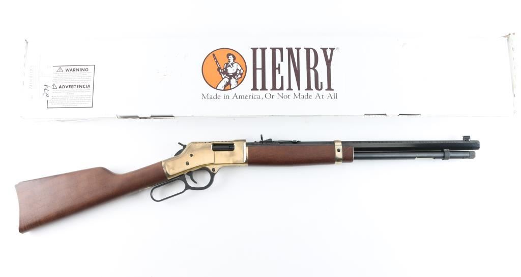 SN: BB0065169M. 'Big Boy' American made lever-action repeating rifle chambered in .357 Magnum/.38 Spl.. Features a blued 20" octagonal barrel, full tube magazine, blade front sight with brass bead, adjustable semi-buckhorn rear sight, brass receiver & barrel band, smooth trigger, serrated hammer, smooth American Walnut forend and straight grip shoulder stock with brass buttplate. receiver drilled/tapped for optics, Includes the original cardboard box with documents. Rifle exhibits approximately 99%+ of it's original finish showing little to no visible wear. Action is smooth, bore is pristine and wood stocks are fine. Condition is like new in box. Modern Firearm.
