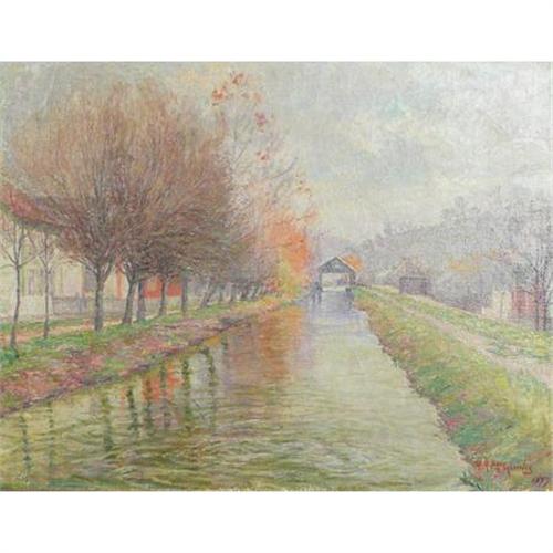Henry Ryan MacGinnis (1875-1962) Erie Canal, Pennsylvania Oil on Canvas Signed lower right 1897 20" x 26"
