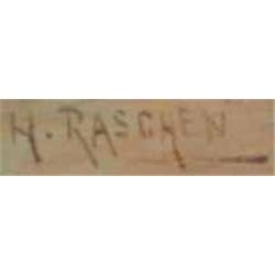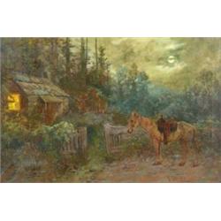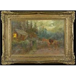 Henry Raschen (1854-1937) (California) Oil on Canvas. "An Evening Visit." 20.25" x 30.125". signed lower right. Est $7,500 - $10,000