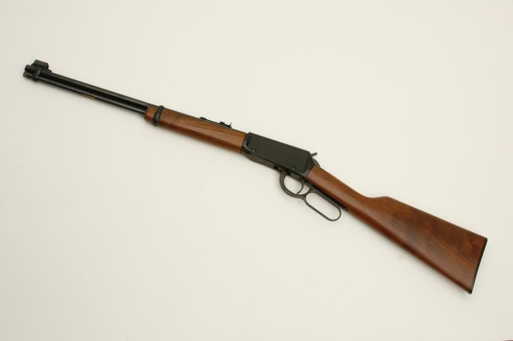 LR caliber, serial #112899. The rifle is in very good overall condition with an 18” barrel and full length tubular magazine. The barrel and magazine retain nearly all of their blued finish while the action retains nearly all of its black finish. The smooth wood stocks are in very good condition as well showing only minor handling marks from storage. The butt stock ends with a black plastic butt plate. The bore is very good; the action is crisp and the markings sharp. (Modern) Est.: $300-$600.