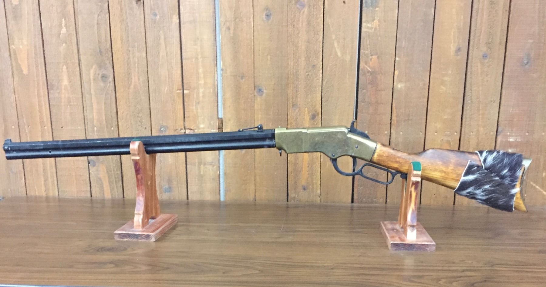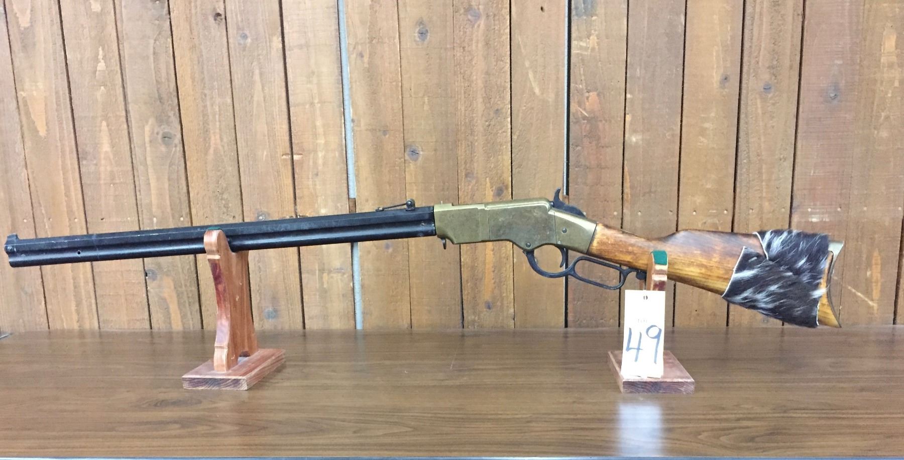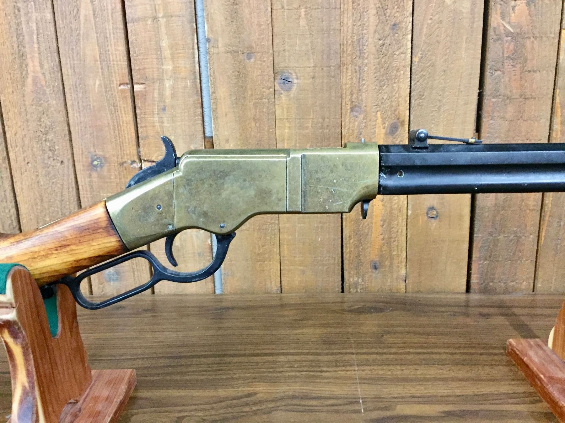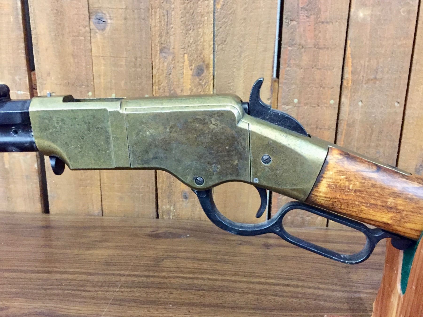 Description: For sale in this lot is a replica, non-firing rifle. It is made to look like a Henry Rifle. This would make a great piece for re-enactment, hanging over the mantle, or in a display for your “man cave”. Maker: Unknown. Approx. Age: Vintage. Size: Barrel measures approximately 23-1/4”. Has an overall length of 42-1/2”. Condition: Good for its age, normal wear expected. Please look closely at the pictures - they are an important part of our description. Shipping: There will be a $10 handling / packaging fee for shipping this lot. The actual cost of postage will be added on top of that.