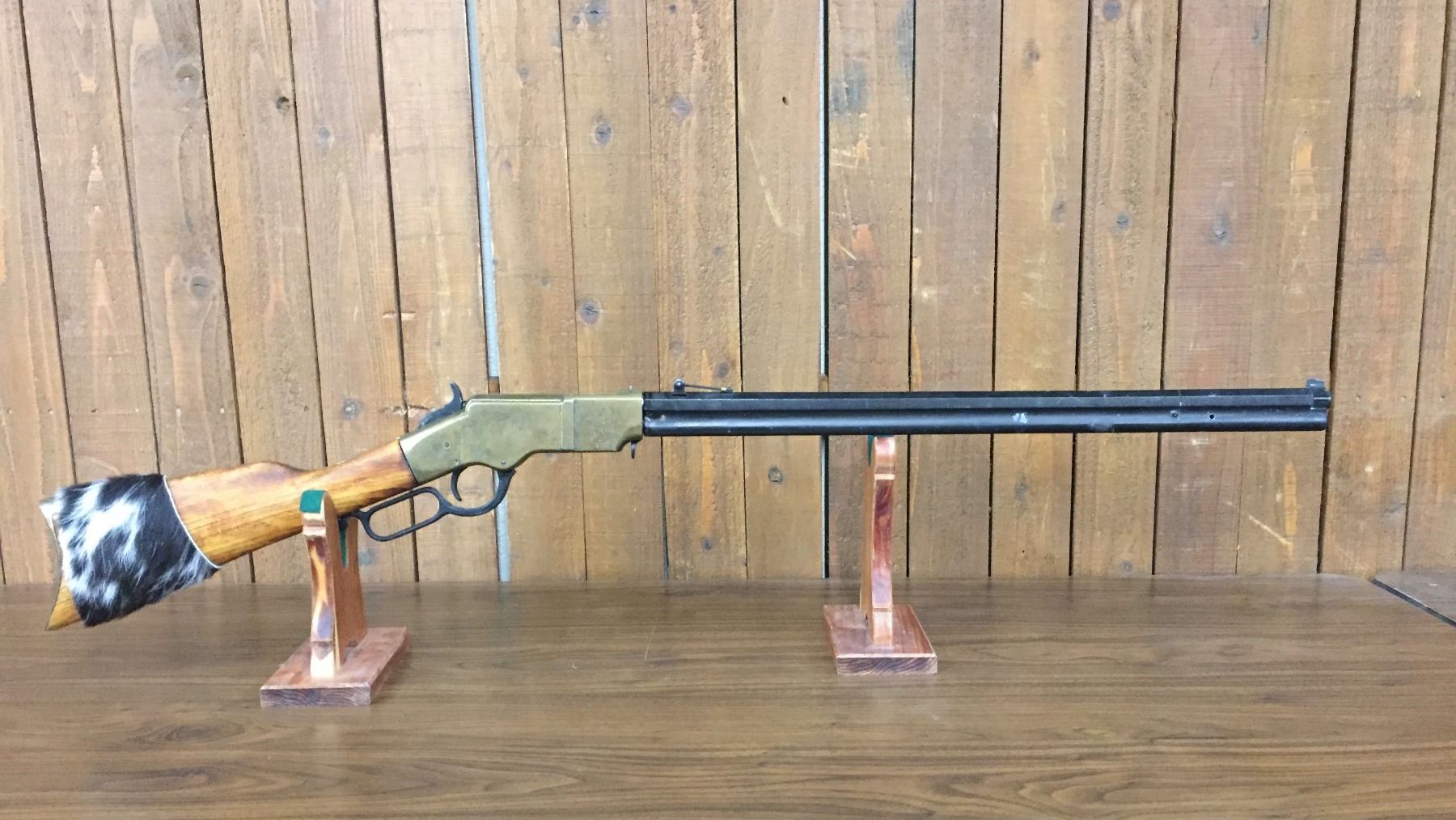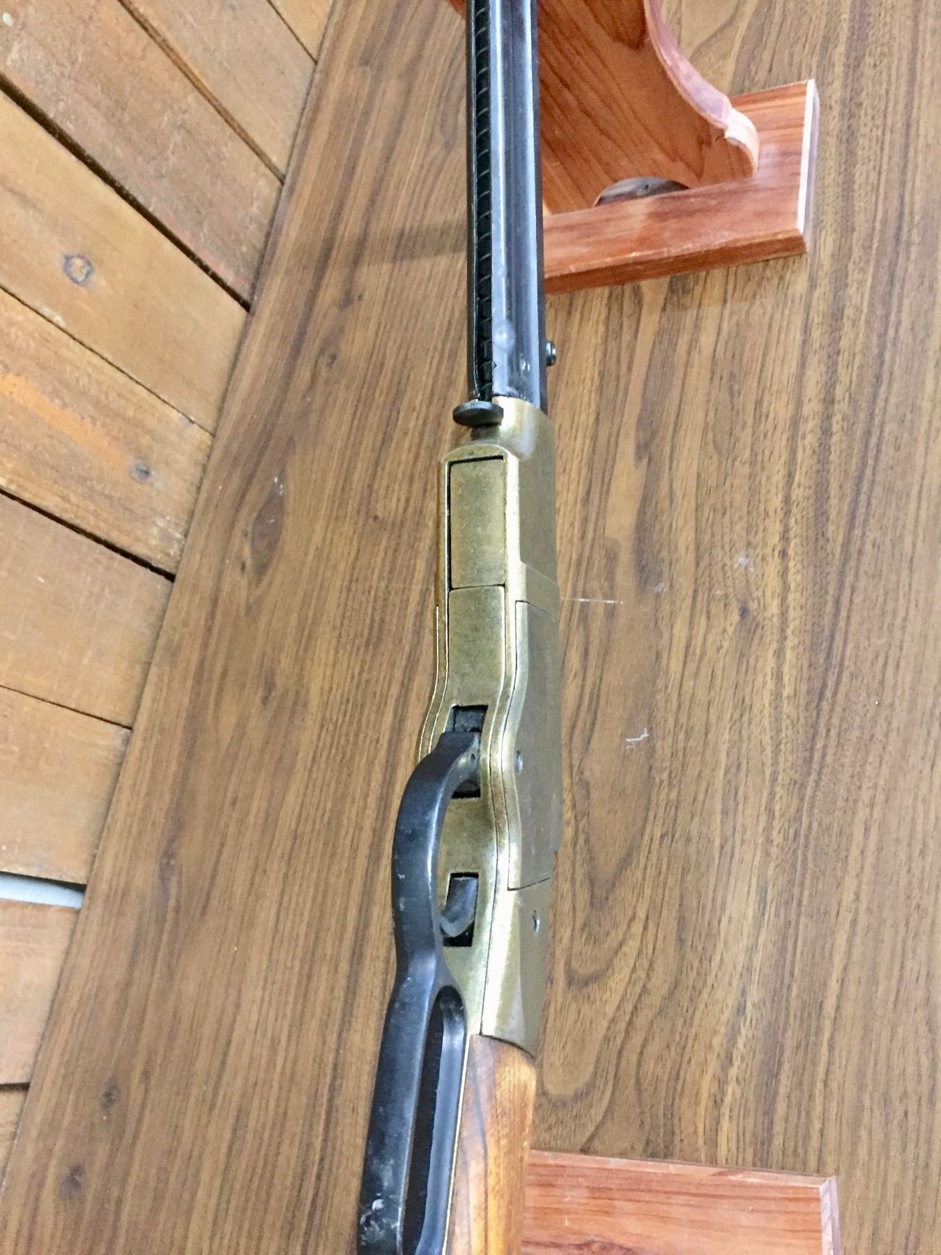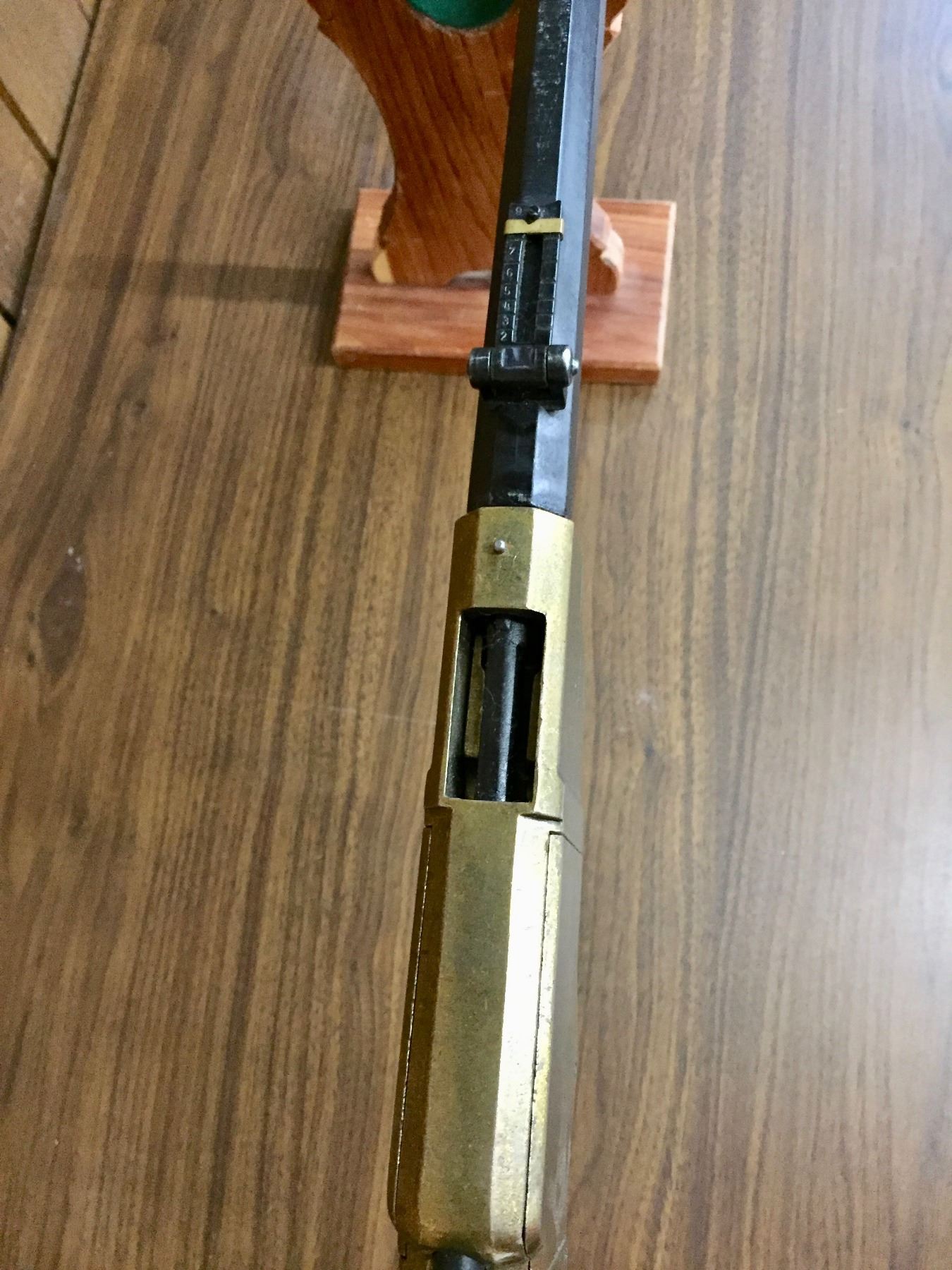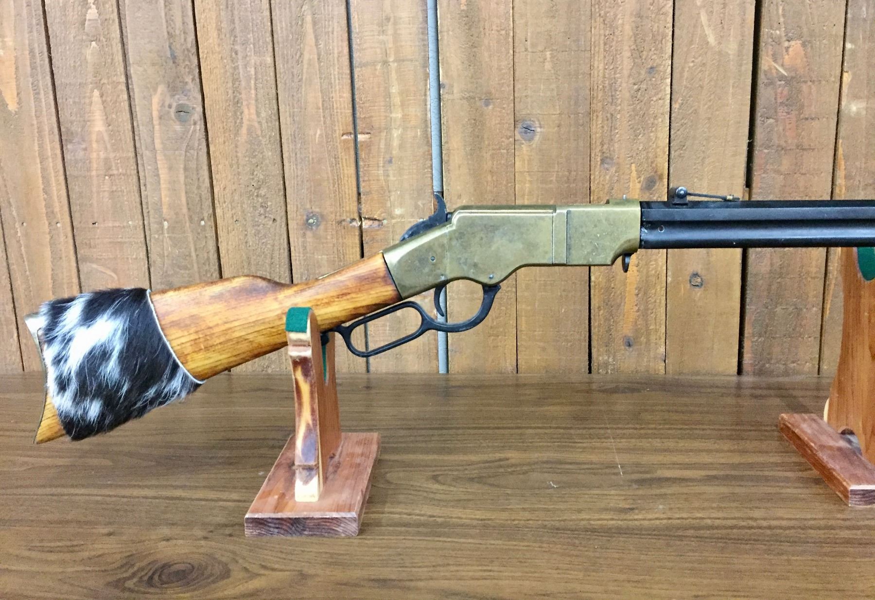 Description: For sale in this lot is a replica, non-firing rifle. It is made to look like a Henry Rifle. This would make a great piece for re-enactment, hanging over the mantle, or in a display for your “man cave”. Maker: Unknown. Approx. Age: Vintage. Size: Barrel measures approximately 23-1/4”. Has an overall length of 42-1/2”. Condition: Good for its age, normal wear expected. Please look closely at the pictures - they are an important part of our description. Shipping: There will be a $10 handling / packaging fee for shipping this lot. The actual cost of postage will be added on top of that.