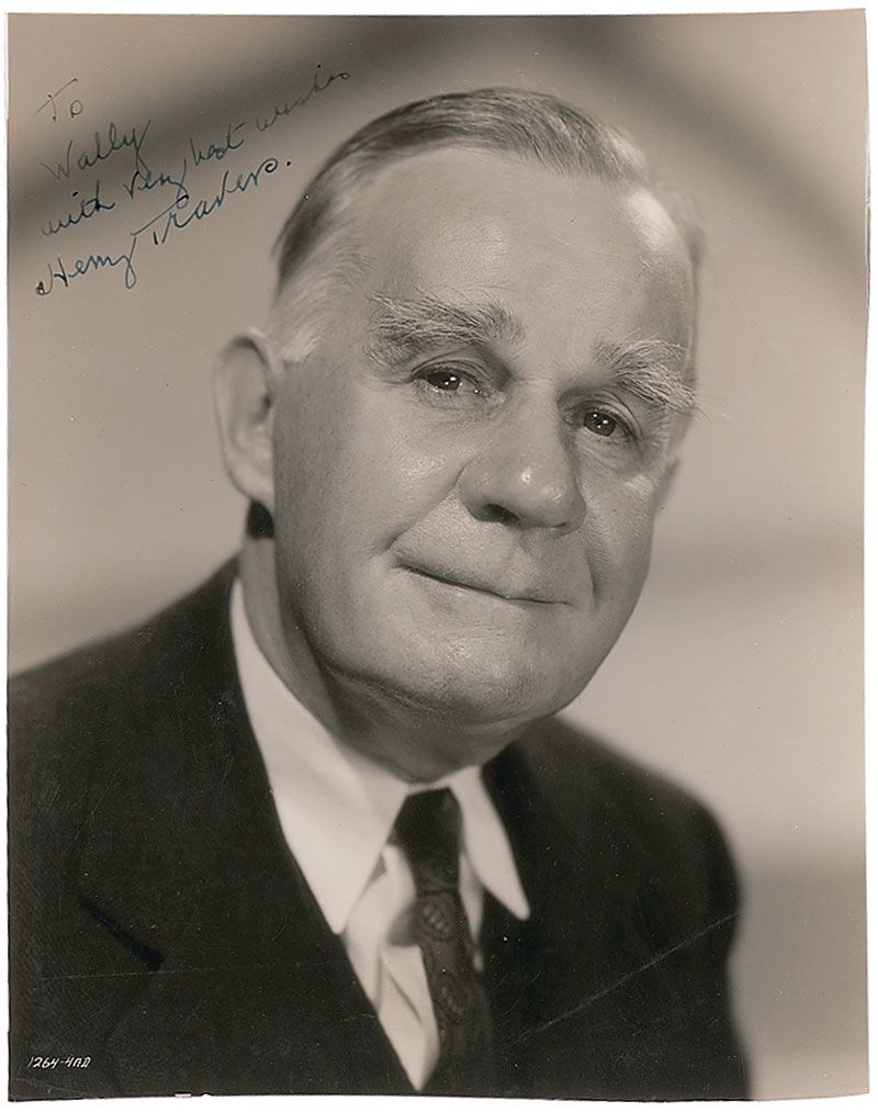 Character actor who portrayed Clarence the angel in It’s a Wonderful Life. Rare vintage glossy 7.25 x 9.25 Universal publicity photo for Alfred Hitchcok’s Shadow of a Doubt, signed and inscribed in fountain pen “To Wally, with very best wishes, Henry Travers.” A promotional caption is afixed to the reverse. In very good condition, with trimmed edges and scattered creases and surface marks. Travers is quite uncommon in signed photos.