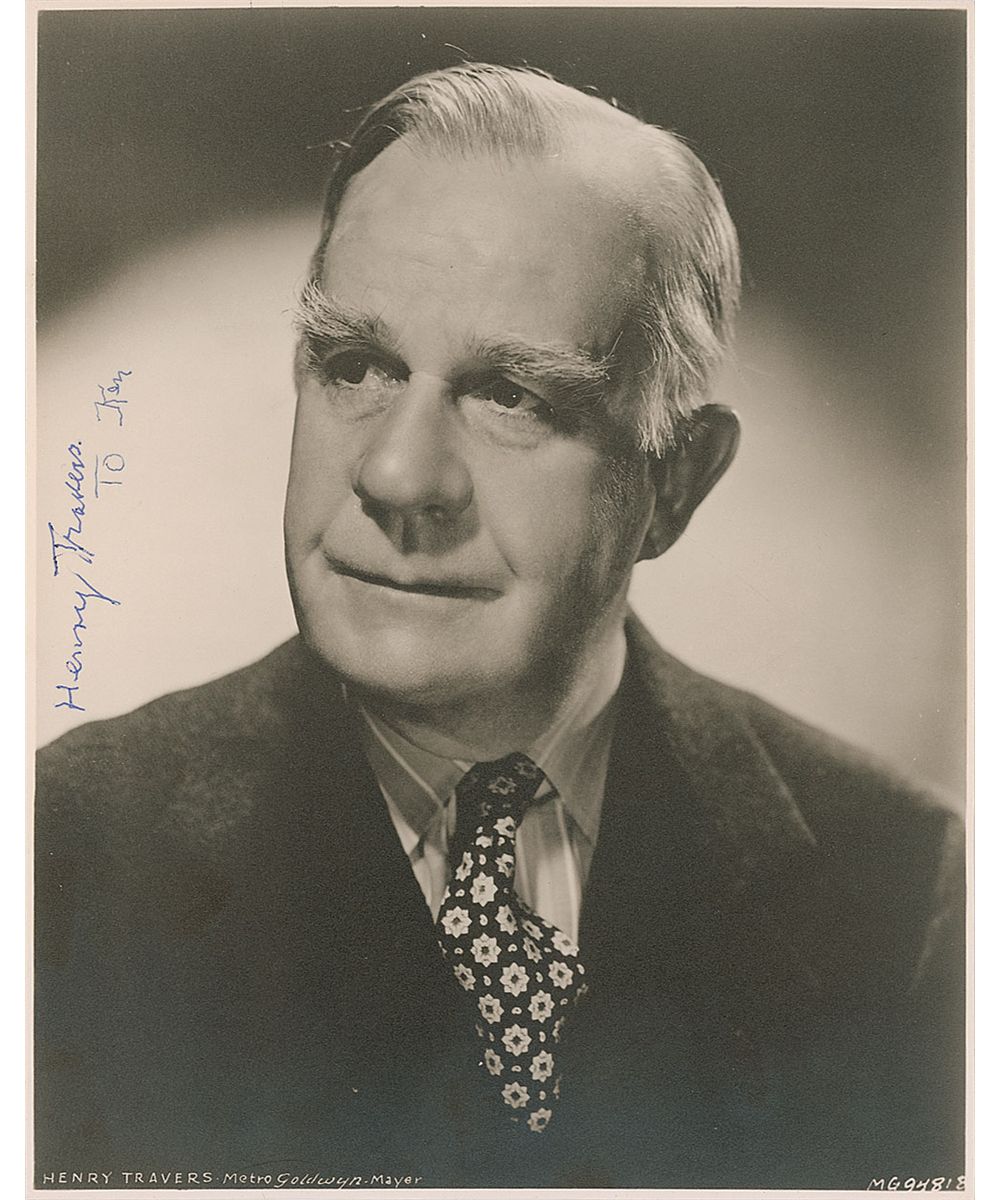 Character actor who portrayed Clarence the Angel in It’s a Wonderful Life. Scarce vintage matte-finish 7.5 x 9.5 photo, signed and inscribed in blue ballpoint “Henry Travers to Ken.” In fine, crisp condition.