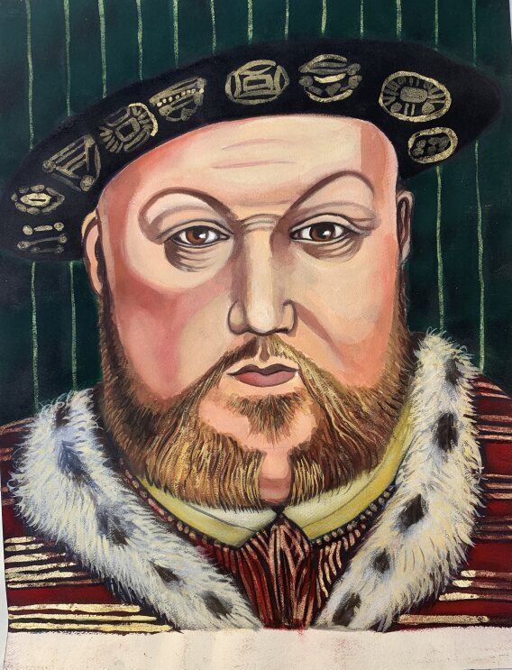 A pastel & watercolor portrait of the powerful vengeful King Henry VIII of England 24x18" on deckled fine art paper, by Anonymous