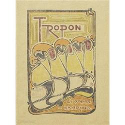 Rare Henry Van De Velde lithograph, colored print with Art Nouveau design, signed, numbered, edition stamp, matted and framed, 11"w x 14"h, important Art Nouveau graphic