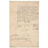 English Puritan (1613–1662), and one of the most capable administrators in Parliament during the Civil Wars between the Parliamentarians and Royalists. Manuscript DS, in Old English, signed “H Vane,” one page, 7.5 x 11.5, June 15, 1652. Untranslated document signed at the conclusion by Vane and four others. In very good condition, with a repaired central vertical separation, not affecting Vane’s signature, and scattered foxing and soiling.