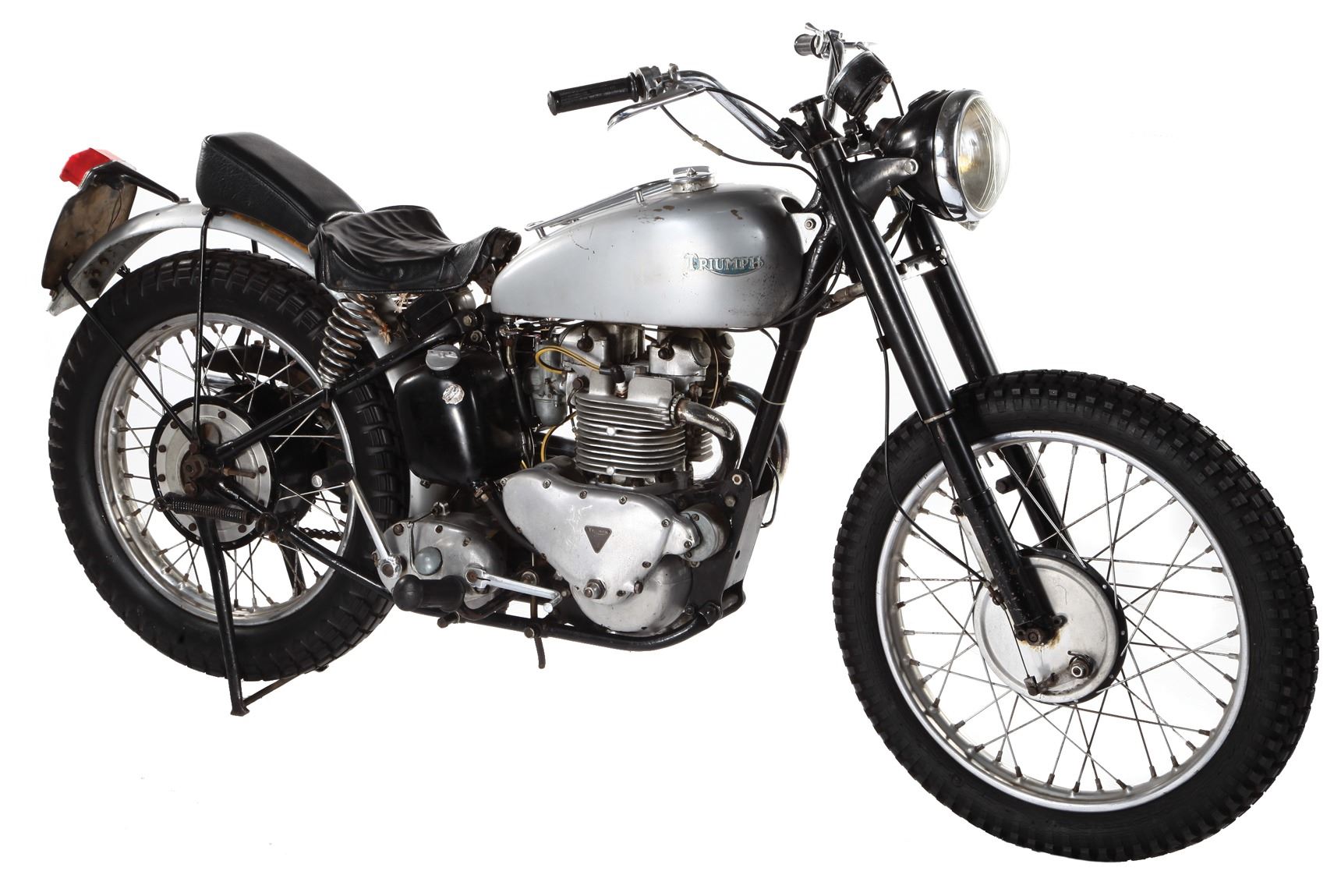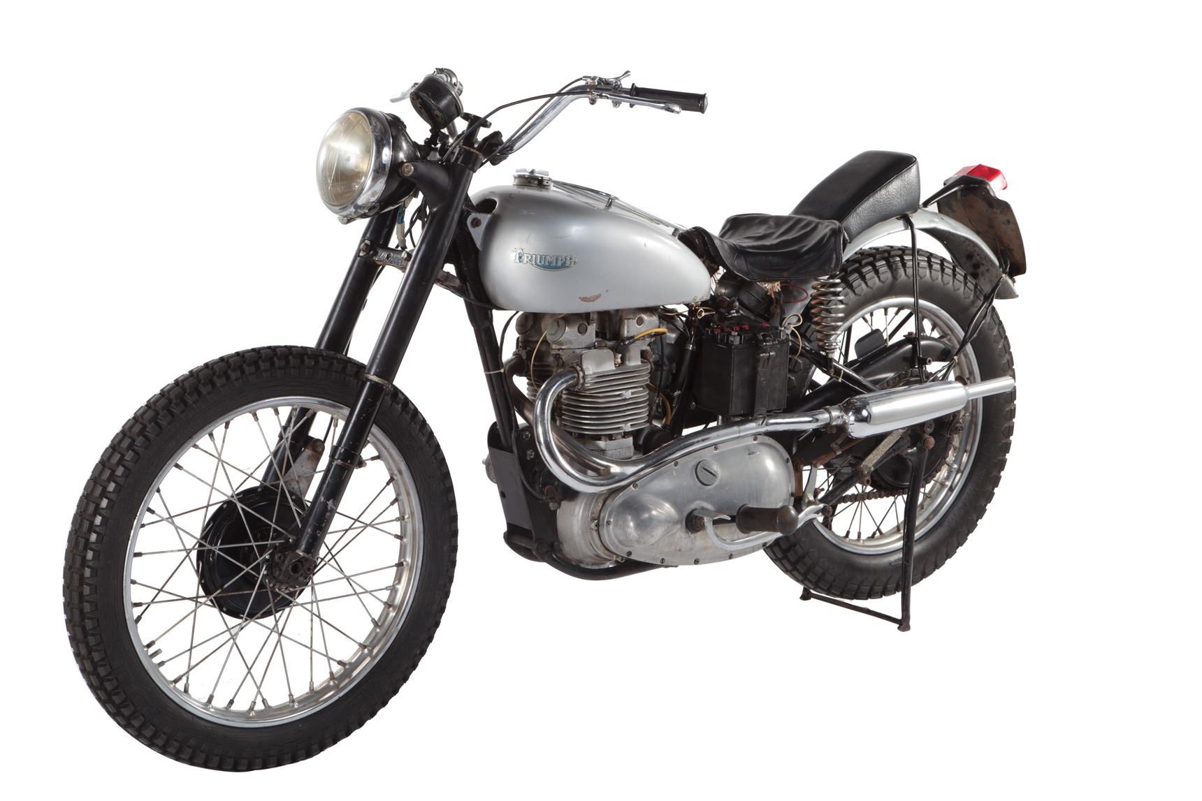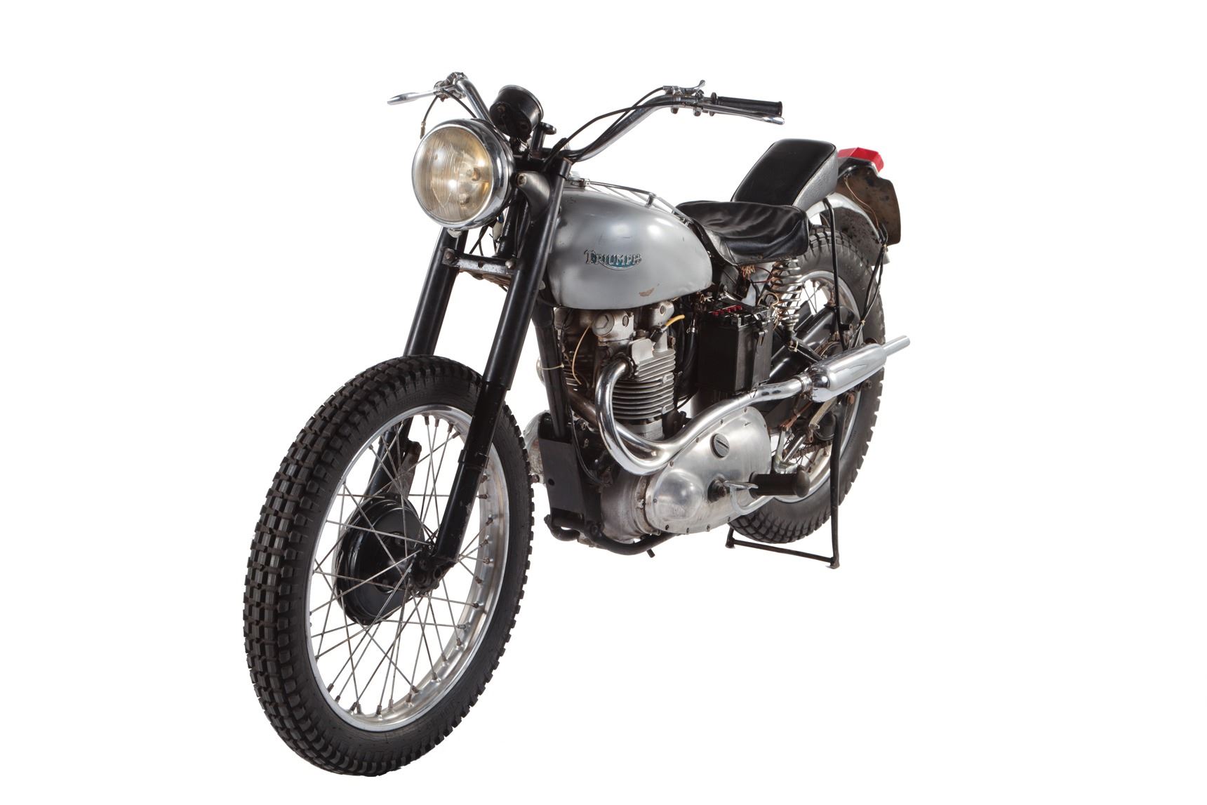 227.Henry Winkler "Arthur The Fonz' Fonzarelli" signature Triumph Trophy TR5 motorcycle from Happy Days. (Paramount TV 1974-84) This is the motorcycle that helped make Arthur Fonzarelli, "The Fonz," The icon of cool - the 1949 Triumph Trophy 500 Custom (frame number TC11198T). Originally a bit player, Fonzie/Winkler, became the breakout star of Happy Days - the long running ABC sitcom watched by some 40 million Americans at its ratings peak. The bike was originally owned by Hollywood stuntman, racer and provider of bikes to the studios Bud Ekins (it was Ekins who actually jumped the barbed-wire fence in The Great Escape, doubling for his friend Steve McQueen). This 49 Triumph is one of three Triumph motorcycles "The Fonz" used during the show's 10-year run on ABC. According to Bud Ekins, all three Triumphs used on the show were 500cc Trophy models of various years - two of which went missing/stolen, or raced to the ground and sold for parts. Eventually, when the show ended, Ekins sold the third and only remaining "Fonzie" Triumph to friend and motorcycle collector Mean Marshall Ehlers where it resided since 1990. Designed to accommodate Henry Winkler's inability to ride larger bikes, Ekins had supplied Paramount's show producers with the beat-up Scrambler, yanking off the front fender, bolted on a set of buckhorn handle bars and spray painted the fuel tank silver. It is often rumored that Winkler was frequently pushed on the bike by stage-hands, confirmed by his own admissions due to his inability to ride a motorcycle. Fonzie's silver Triumph became a pop culture icon, appearing on countless lunchboxes, posters, t-shirts, model kits and magazines. When the show was cancelled, one of Fonzie's signature brown leather jackets was gifted to The Smithsonian Institution. The "cool factor" of this Triumph is impossible to quantify or duplicate. The bike measures 82 in. long x 43 in. tall and remains untouched since appearing on television screens over 30 years ago. The motorcycle was awarded to the prior owner at a Seminole Indian casino by Henry Winkler, himself. $70,000 - $90,000