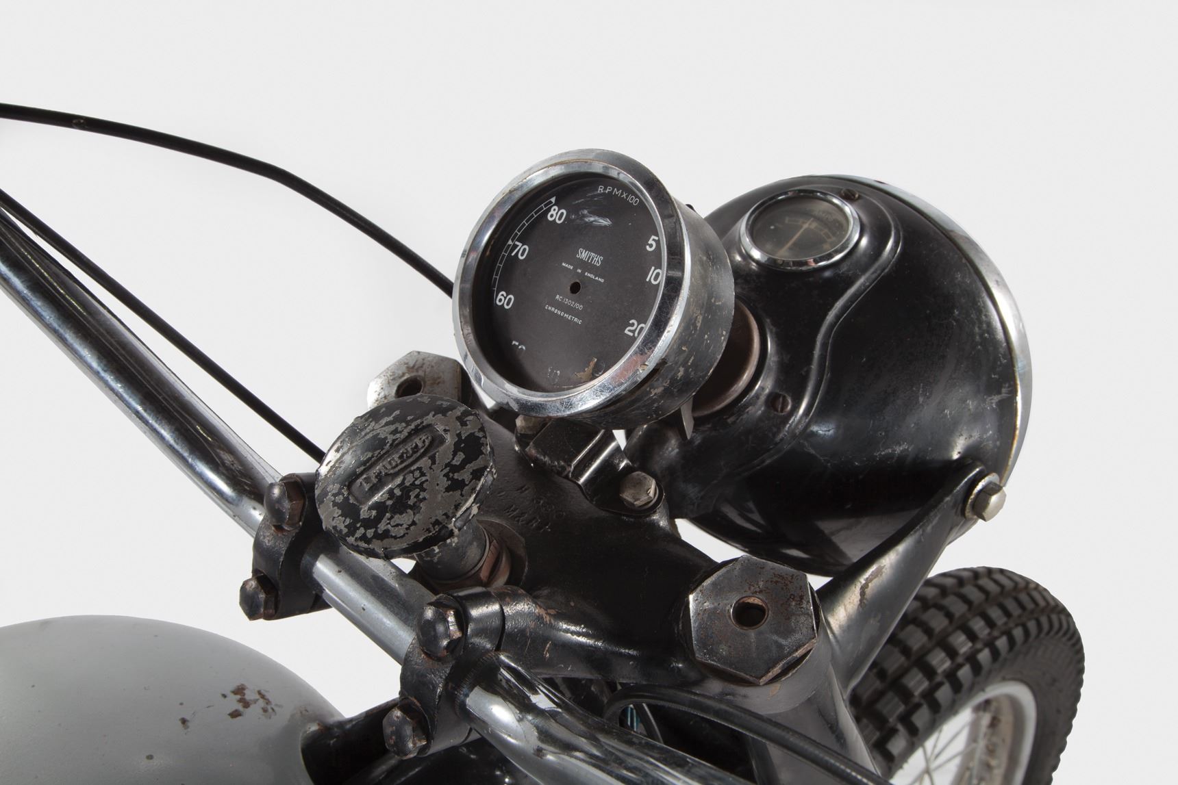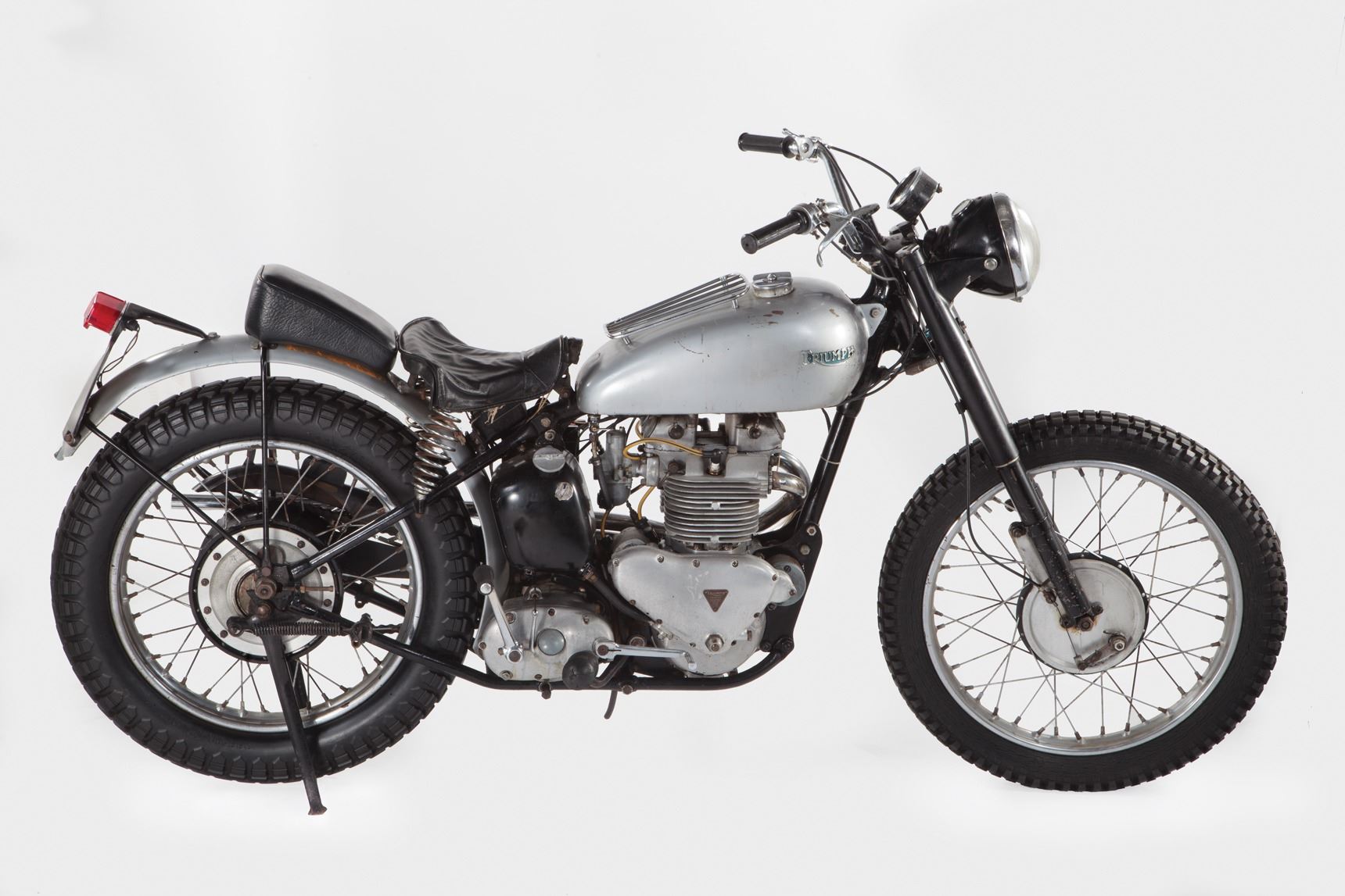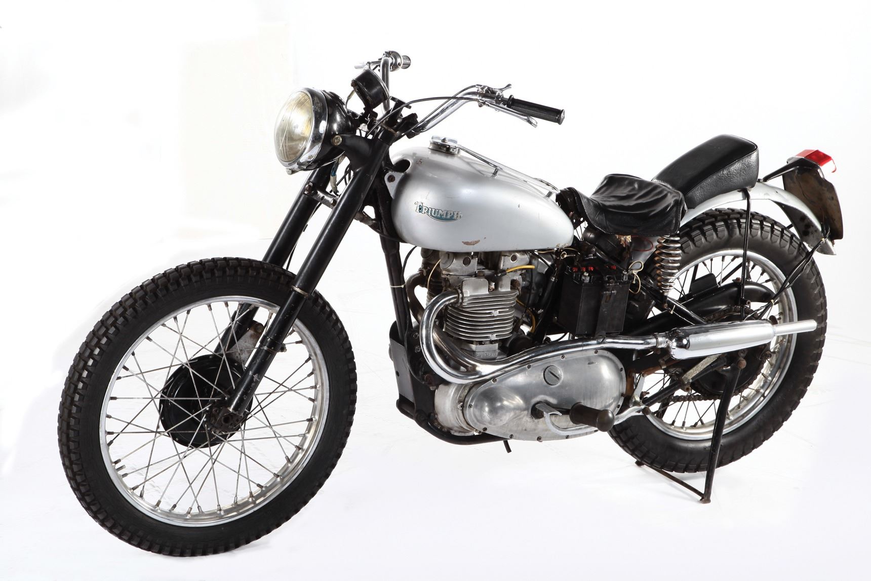 227.Henry Winkler "Arthur The Fonz' Fonzarelli" signature Triumph Trophy TR5 motorcycle from Happy Days. (Paramount TV 1974-84) This is the motorcycle that helped make Arthur Fonzarelli, "The Fonz," The icon of cool - the 1949 Triumph Trophy 500 Custom (frame number TC11198T). Originally a bit player, Fonzie/Winkler, became the breakout star of Happy Days - the long running ABC sitcom watched by some 40 million Americans at its ratings peak. The bike was originally owned by Hollywood stuntman, racer and provider of bikes to the studios Bud Ekins (it was Ekins who actually jumped the barbed-wire fence in The Great Escape, doubling for his friend Steve McQueen). This 49 Triumph is one of three Triumph motorcycles "The Fonz" used during the show's 10-year run on ABC. According to Bud Ekins, all three Triumphs used on the show were 500cc Trophy models of various years - two of which went missing/stolen, or raced to the ground and sold for parts. Eventually, when the show ended, Ekins sold the third and only remaining "Fonzie" Triumph to friend and motorcycle collector Mean Marshall Ehlers where it resided since 1990. Designed to accommodate Henry Winkler's inability to ride larger bikes, Ekins had supplied Paramount's show producers with the beat-up Scrambler, yanking off the front fender, bolted on a set of buckhorn handle bars and spray painted the fuel tank silver. It is often rumored that Winkler was frequently pushed on the bike by stage-hands, confirmed by his own admissions due to his inability to ride a motorcycle. Fonzie's silver Triumph became a pop culture icon, appearing on countless lunchboxes, posters, t-shirts, model kits and magazines. When the show was cancelled, one of Fonzie's signature brown leather jackets was gifted to The Smithsonian Institution. The "cool factor" of this Triumph is impossible to quantify or duplicate. The bike measures 82 in. long x 43 in. tall and remains untouched since appearing on television screens over 30 years ago. The motorcycle was awarded to the prior owner at a Seminole Indian casino by Henry Winkler, himself. $70,000 - $90,000