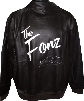 Henry Winkler is an American actor, director, producer, and author. Winkler is best known for his role as Fonzie on the 1970s American sitcom Happy Days. "The Fonz," a leather-clad greaser and auto mechanic, started out as a minor character at the show's beginning but had achieved top billing by the time the show ended. Henry Winkler has hand signed this "The Fonz" Brown Leather-like/Polyester Jacket with "Fonz" inscription. The Jacket is made by Television City. It's made of 100% Polyester. One size fits most. MAB Hologram and Certificate of Authenticity from Athlon Sports.