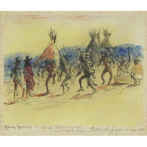 Henry Ziegler (1889-1968) (New York) Gouache & Ink, "Kiowa Festival", 5" x 6", signed lower right