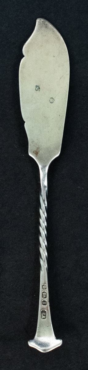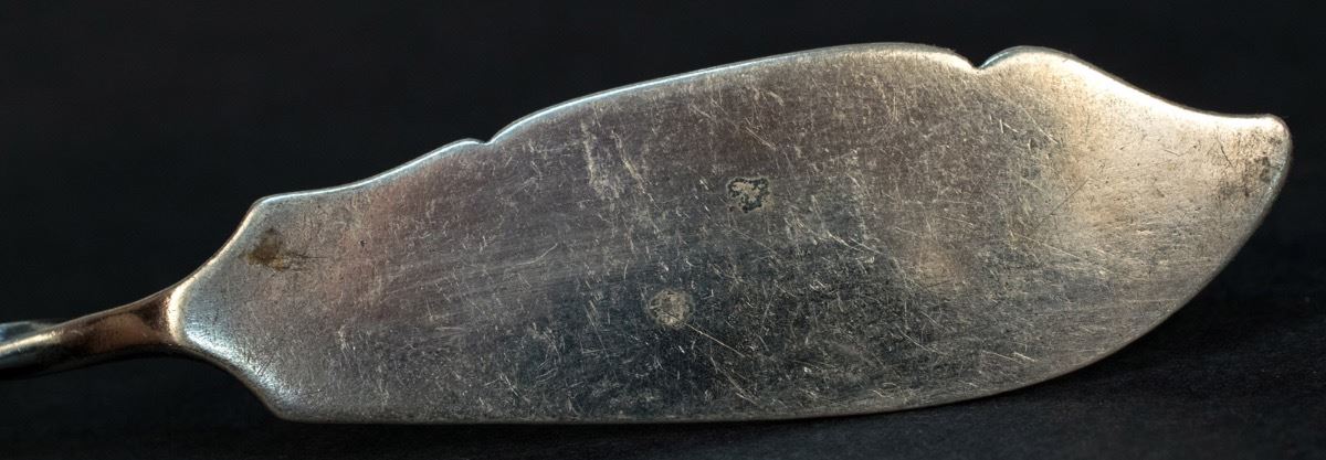 Couteau à beurre en argent sterling, poinçon(s) et sceau du fabricant au dos
