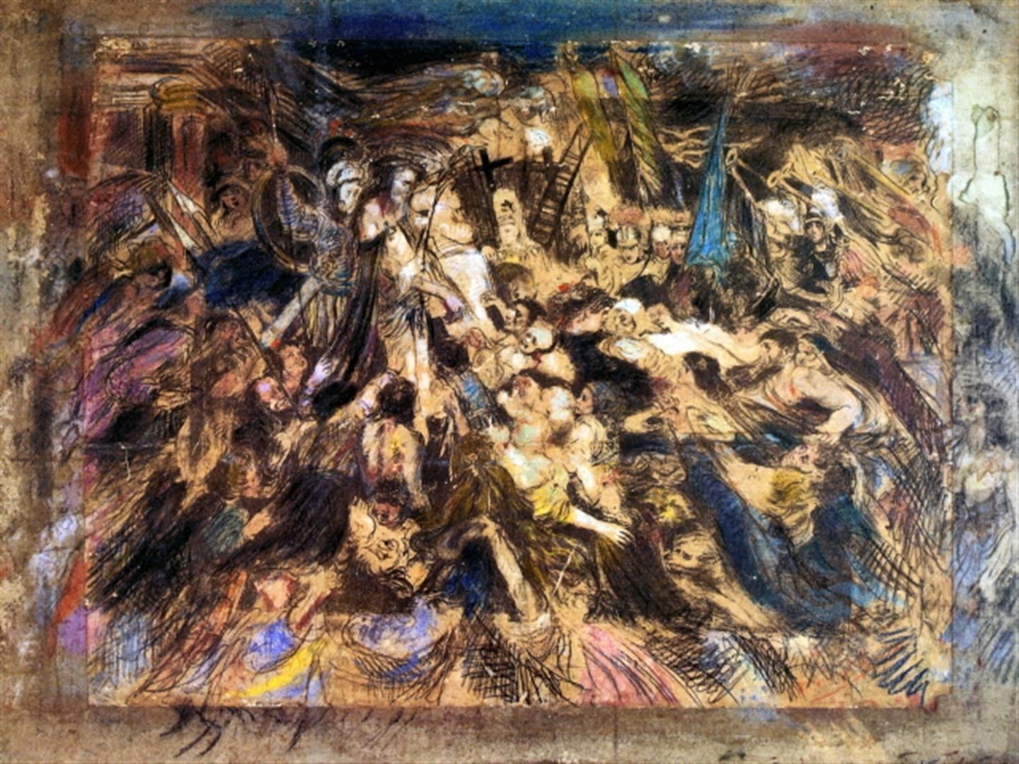 Artist: Henry de Groux - Title: The Mocking of Christ - Medium: Fine Art Giclee on Canvass - Image Size: Approximately 20 inches x 15 inches - Unframed on Unstretched Canvas - Biography: Henry de Groux (15 September 1866 - 12 January 1930) was a Belgian Symbolist painter, sculptor and lithographer. His 1889 painting Christ attacked by a mob made when he was only 22 years old established his reputation as an innovative Symbolist painter and ensured his admission to the progressive artistic circles in Brussels. He spent most of his active career in Paris. He produced many works depicting the horrors of the First World War in the latter part of his career.